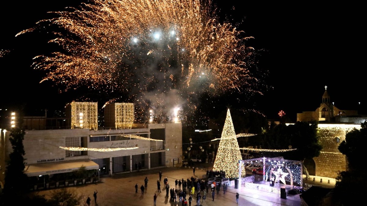 Der große Weihnachtsbaum, der sonst in der Adventszeit vor der Geburtskirche steht, fehlt. Bereits im November hatten die Oberhäupter der Kirchen in Jerusalem festgelegt, dass es wegen des Krieges keine Weihnachtsdekoration im Heiligen Land geben soll.