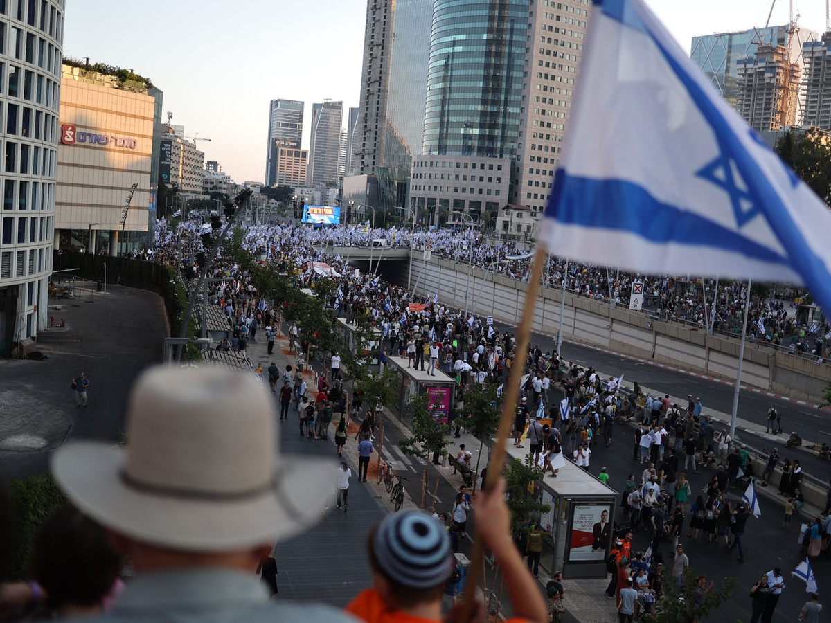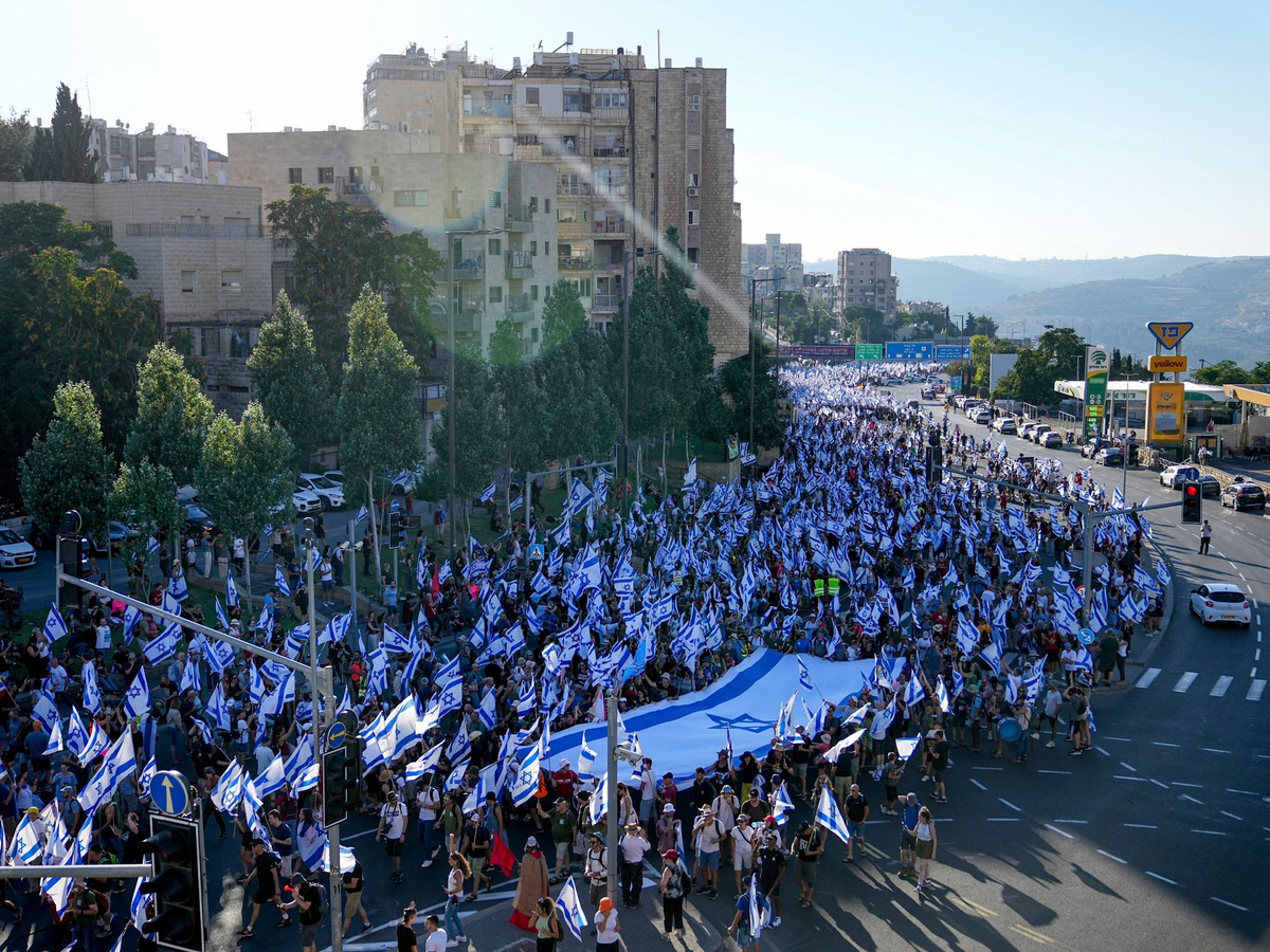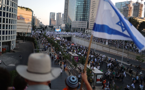 Am Samstag waren Hunderttausende gegen die Justizreform auf die Straßen gegangen. Die Organisatoren gaben die Zahl der Teilnehmer am Samstag mit mehr als einer halben Million an. Israel hat zehn Millionen Einwohner. Seit mehr als einem halben Jahr spaltet der geplante Justizumbau weite Teile der Gesellschaft.