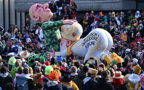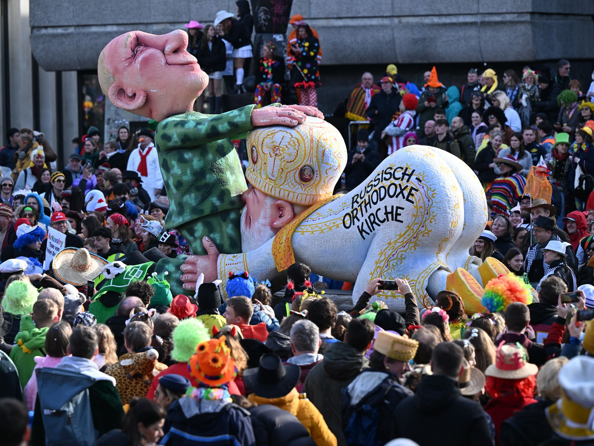 • Besonders ein zwischen Kremlchef Wladimir Putin und Patriarch Kirill als Karikatur dargestellter Oralverkehr ist Gegenstand des umstrittenen Gerichtsverfahrens gegen den Karnevalisten Jacques Tilly. (Archivbild) - Foto: Federico Gambarini/dpa