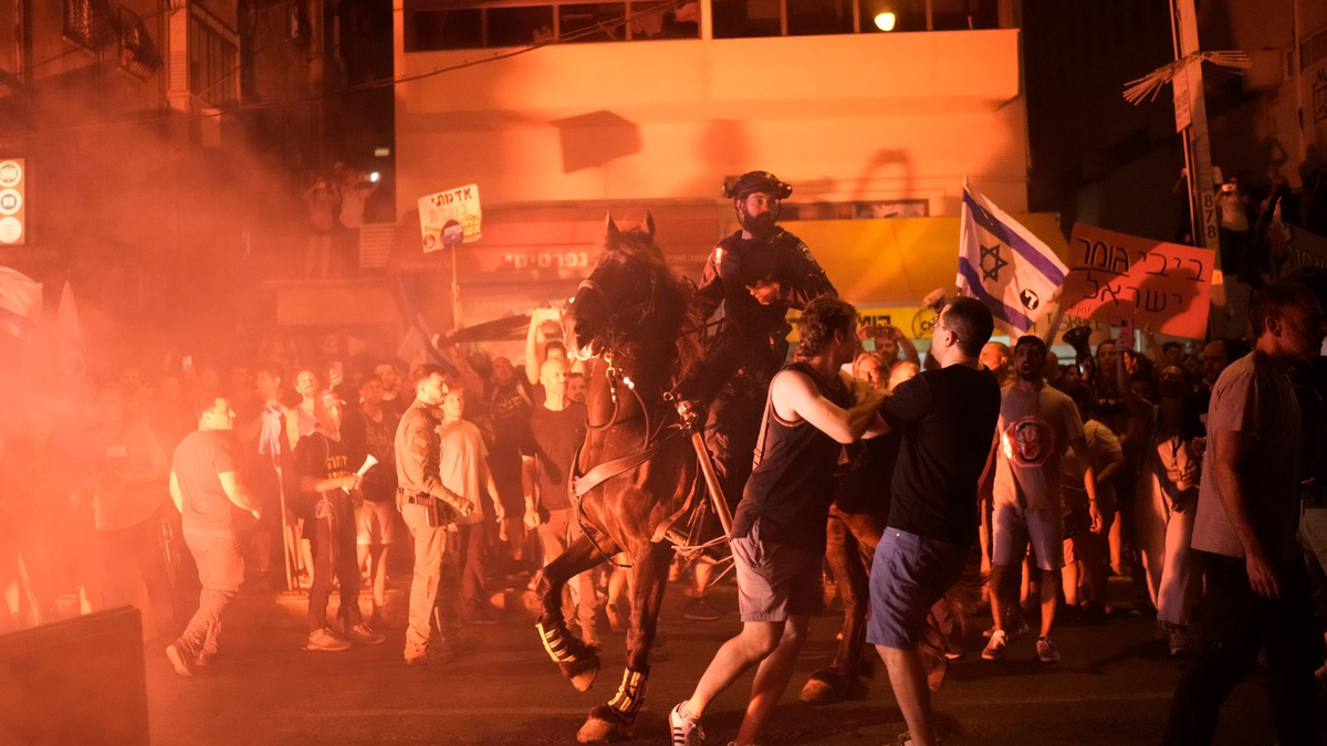 Bei den Massenprotesten gegen Netanjahus Regierung in Tel Aviv kam es zu Rangeleien mit der Polizei, mehrere Personen seien festgenommen worden. Polizeiminister ist der rechtsextreme Politiker Itamar Ben-Gvir. Berittene Beamte hätten versucht, mit ihren Pferden einige der Demonstranten auseinanderzutreiben. Auf einem Video ist zu sehen, wie ein Polizist eine Fernsehjournalistin mit Gewalt zur Seite stößt.