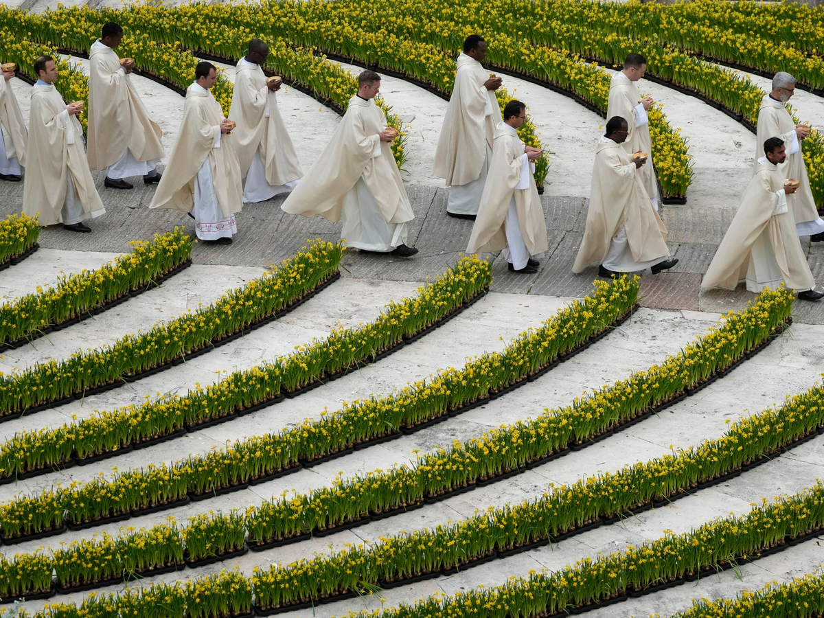Die Ostermesse feierte er mit Zehntausenden Pilgern und Touristen. Unter großem Jubel wurde er danach mit dem Papamobil an den Menschenmassen vorbeigefahren - viele Gläubige riefen laut «Viva il Papa!» (Es lebe der Papst). Bei Temperaturen um die 20 Grad mit starkem Wind war der Petersplatz gut gefüllt. Wie in jedem Jahr war der Platz mit zahlreichen Blumen und Pflanzen geschmückt.