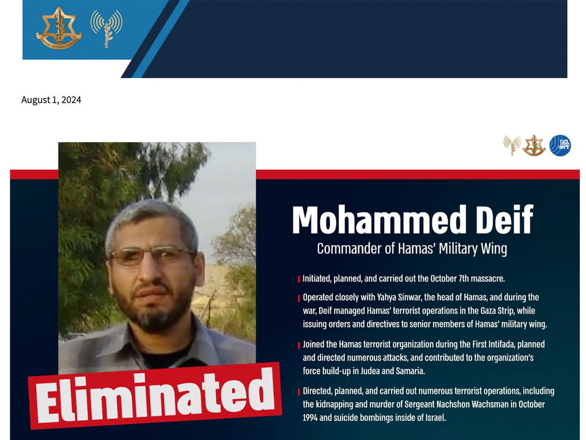 Vor gut drei Monaten erklärte Israel auch den Hamas-Anführer Jihia al-Sinwar für tot. Die Hamas bestätigte dies damals. Er galt als Drahtzieher des Massakers in Israel am 7. Oktober 2023. Auch Deif als Chef der Kassam-Brigaden spielte eine zentrale Rolle bei dem Terrorangriff auf Israel mit mehr als 1.200 Toten.