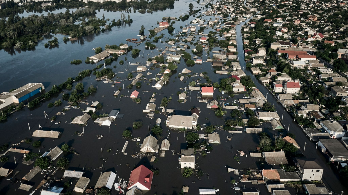 Die Umweltkatastrophe: Die ukrainische Regierung spricht von der größten menschengemachten Umweltkatastrophe der vergangenen Jahrzehnte in Europa. Industriebetriebe sind zerstört. Chemikalien und andere Schadstoffe treten aus. Nach nicht unabhängig prüfbaren Angaben der ukrainischen Führung sind mindestens 150 Tonnen Maschinenöl in den Fluss Dnipro gelangt. 300 weitere Tonnen Öl drohten noch auszulaufen. Auch Flora und Fauna werden in Mitleidenschaft gezogen durch die Fluten.
