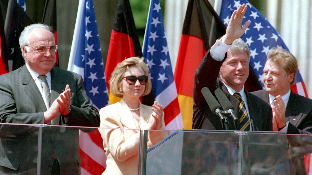 1994 redet Clinton als erster US-Präsident im Ostteil Berlins und sagt auf Deutsch: «Nichts wird uns aufhalten. Alles ist möglich. Berlin ist frei». Noch vier weitere Male kommt er nach Deutschland, unter anderem, um 2000 den Karlspreis in Aachen entgegenzunehmen.