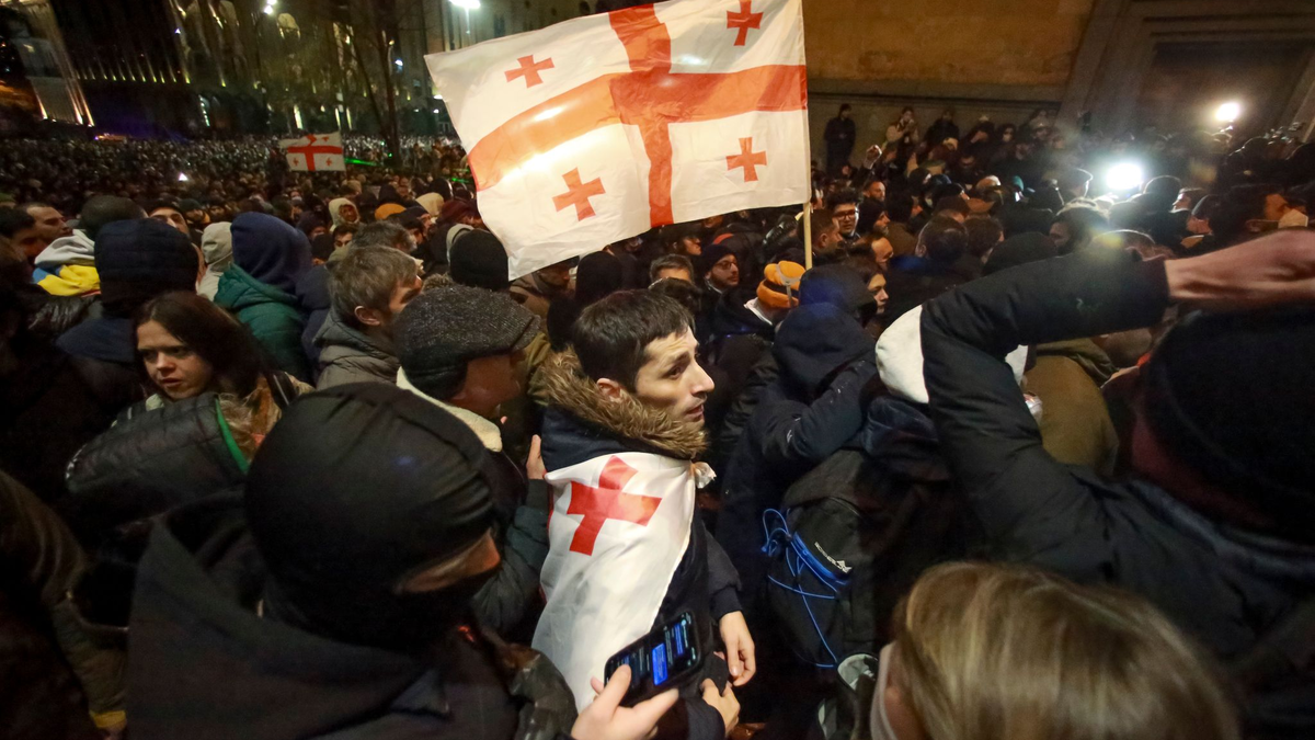 Nachmittags hatte der nationalkonservative Ministerpräsident Irakli Kobachidse den Beitrittsprozess für gestoppt erklärt. Vor Ende 2028 werde Georgien nicht mit Brüssel über einen Beitritt verhandeln und bis dahin auch keine Haushaltszuschüsse der EU annehmen. Er wertete Kritik der EU am zunehmend autoritären Kurs von Georgischer Traum als unangemessenen Druck auf sein Land.
