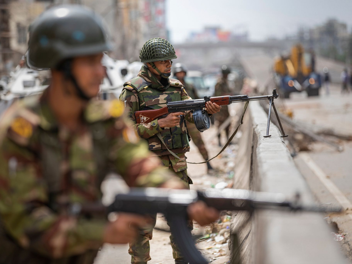 Seit Freitag um Mitternacht herrscht im Land eine Ausgangssperre, und die Armee ist im ganzen Land stationiert. Trotzdem kam es laut BBC Bangla auch am Samstag zu vereinzelten gewaltsamen Zwischenfällen. Am Sonntagnachmittag wurde die Ausgangssperre für zwei Stunden gelockert, damit die Menschen wichtige Besorgungen tätigen könnten, hieß es. Für Montag wurde ein Feiertag ausgerufen.