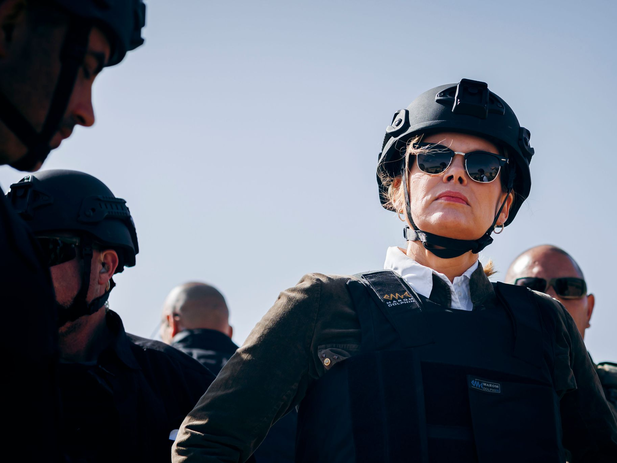 Klöckner war in Jeans, weißer Bluse und grünem Blazer sowie Stiefeln unterwegs. Zu ihrer Sicherheit musste sie eine Schutzweste und einen Helm tragen. Begleitet wurde sie von israelischen Soldaten.
