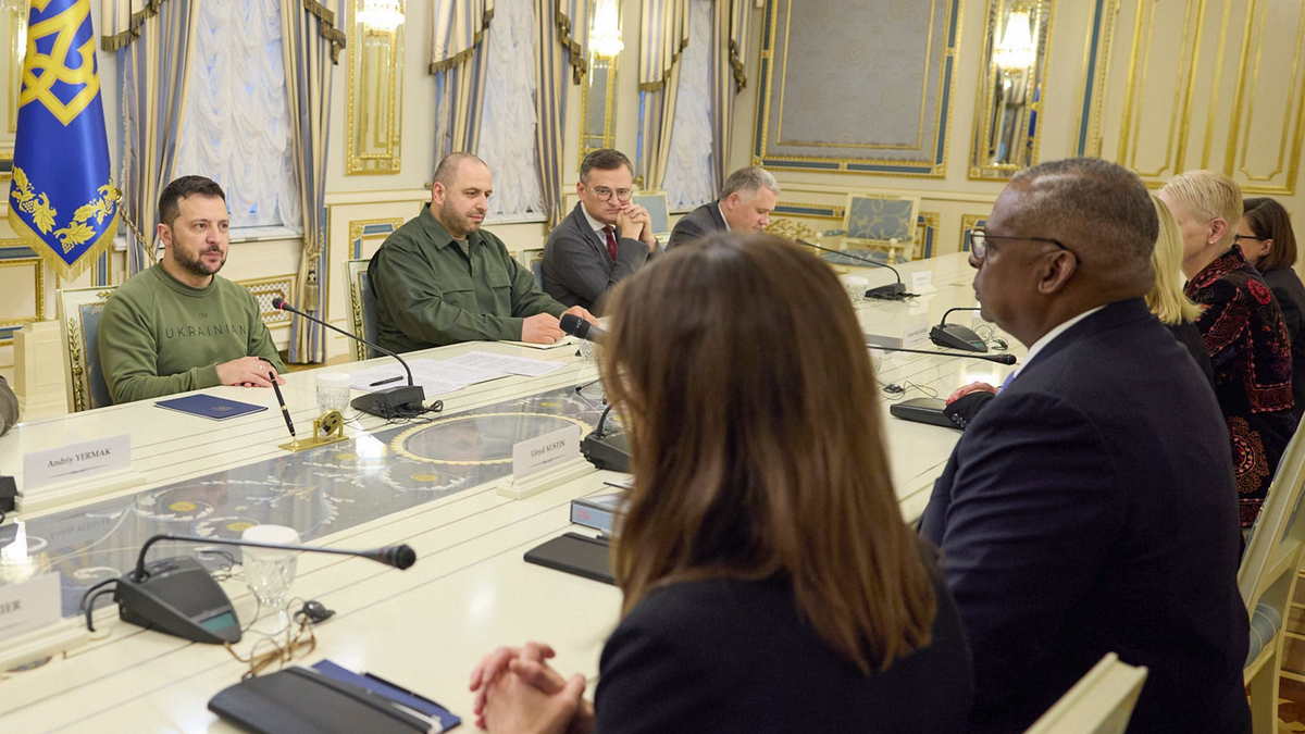 Wie bei allen ausländischen Politikern war die Reise des Pentagonchefs aus Sicherheitsgründen nicht vorher öffentlich gemacht worden. Mit Austin kam der Oberbefehlshaber der US-Truppen in Europa, General Christopher Cavoli, nach Kiew, wie US-Botschafterin Bridget Brink mitteilte. Videoaufnahmen zufolge nahmen an dem Treffen mit Selenskyj von ukrainischer Seite auch Außenminister Dmytro Kuleba und Verteidigungsminister Rustem Umjerow teil.