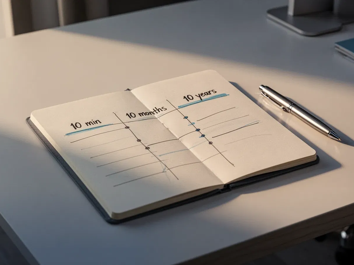 Dazu stellt man sich drei Fragen: Welche Auswirkungen hat meine Entscheidung in 10 Minuten? Wie werde ich in 10 Monaten darüber denken? Und was bedeutet sie für 10 Jahre? Diese gedankliche „Zeitreise“ überwindet impulsive Reaktionen und fördert eine rationale, nachhaltige Entscheidungsfindung.
