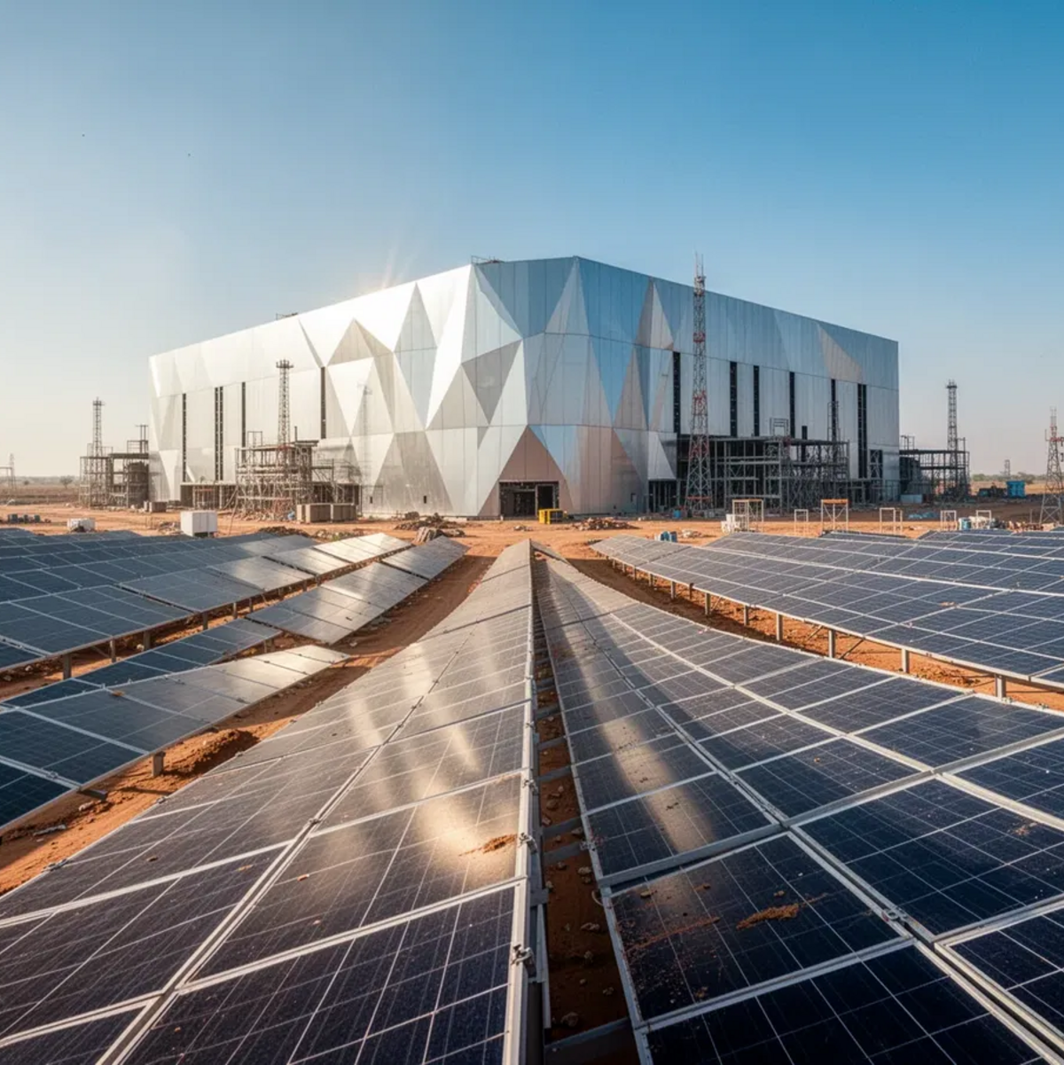 Die benötigte Energie soll vollständig klimaneutral sein. Den Grundpfeiler bildet das riesige Solar- und Windprojekt Adani Green Energy in Khavda, Gujarat, mit einer geplanten Gesamtleistung von 30 Gigawatt. Über 10 GW sind bereits am Netz. Zusätzlich sind separate Investitionen von 55 Milliarden Euro in den Ausbau der Erneuerbaren und eines der weltweit größten Batteriespeichersysteme geplant.