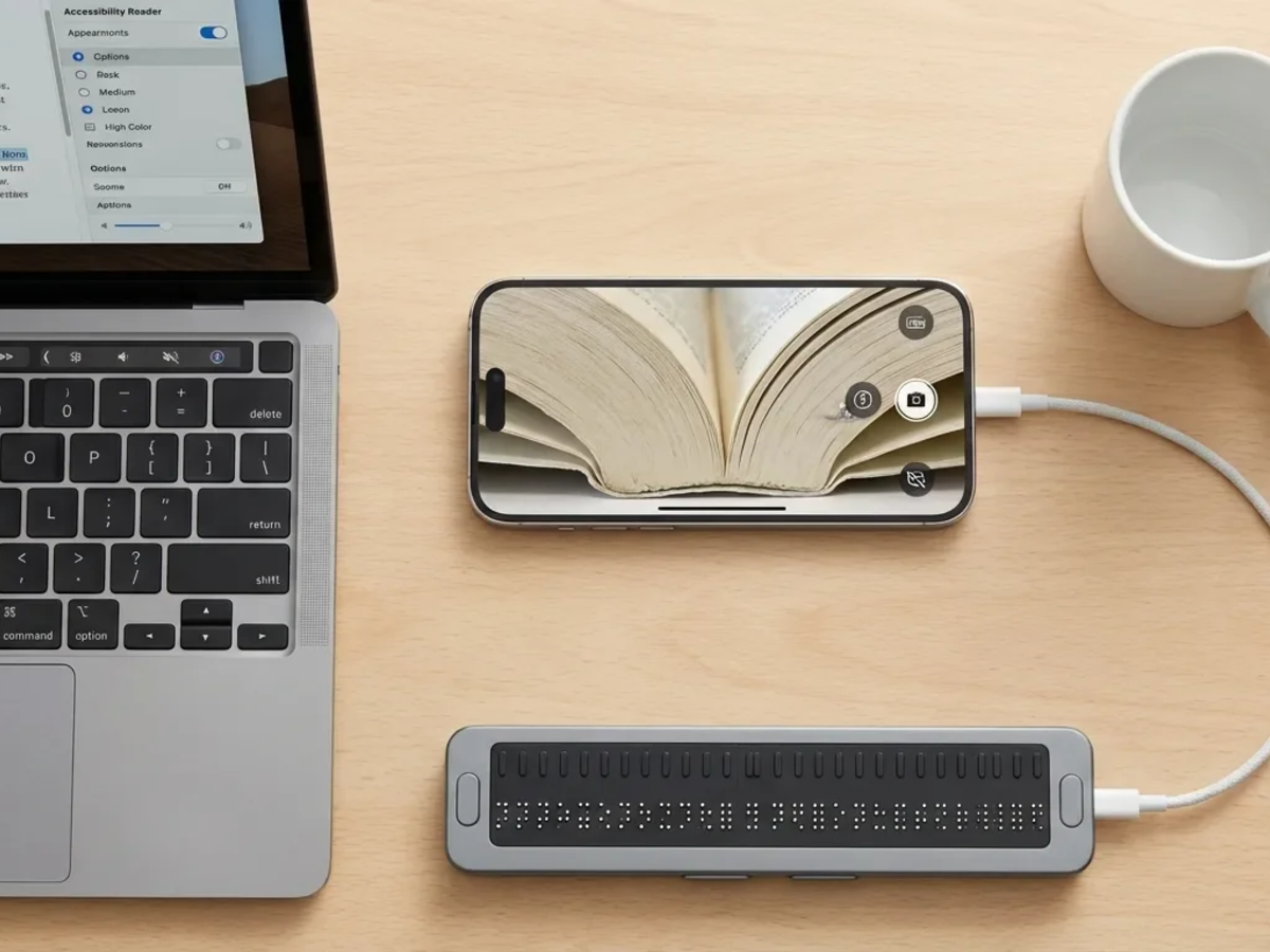 Der Accessibility Reader reduziert visuelle Komplexität für Menschen mit Legasthenie und anderen kognitiven Besonderheiten. Braille-Zugang wurde tiefer ins Ökosystem integriert, sodass Braillezeilen nahtloser mit allen Geräten kommunizieren. Und die Lupe-Funktion, bisher nur am iPhone verfügbar, läuft nun auch auf dem Mac – wichtig für Studierende mit Sehbeeinträchtigung, die physische Objekte oder gedruckte Texte am Computerbildschirm vergrößern wollen.