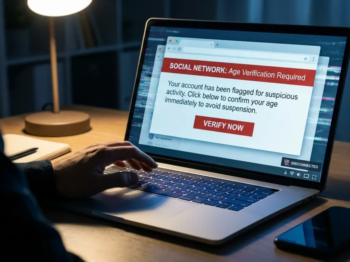Sicherheitsforscher von Malwarebytes stellten in einem Update vom 29. Dezember einen direkten Zusammenhang zwischen den neuen Alterskontrollen und betrügerischen Aktivitäten fest. Während viele Nutzer versuchen, die Sperren mit VPNs zu umgehen, ist eine direktere Bedrohung entstanden: KI-generierte Phishing-Kampagnen.