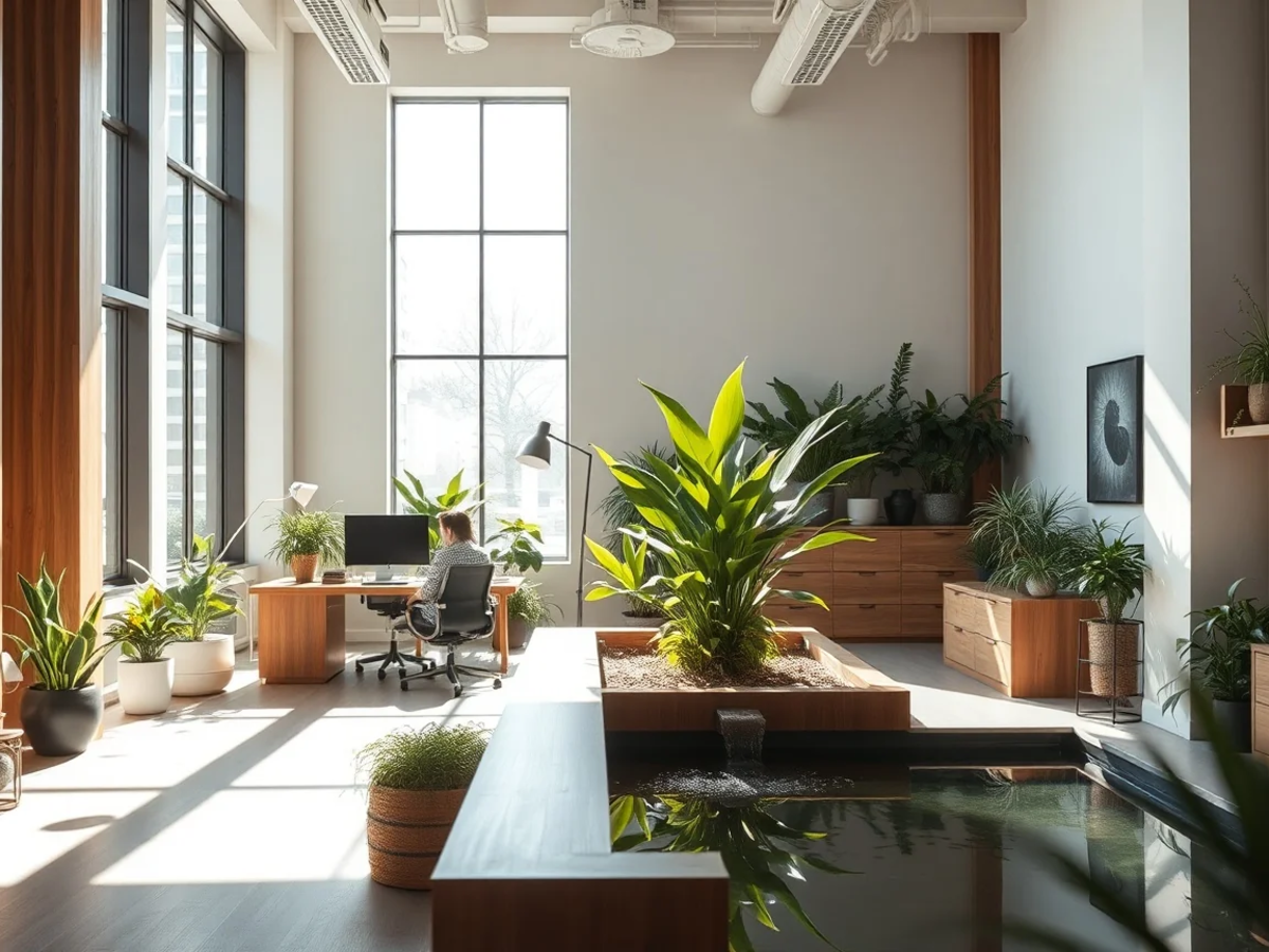 Ein Kernprinzip ist das biophile Design. Es nutzt die menschliche Verbundenheit zur Natur. Studien zeigen: Naturelemente im Büro können die Produktivität um bis zu 15 Prozent steigern.