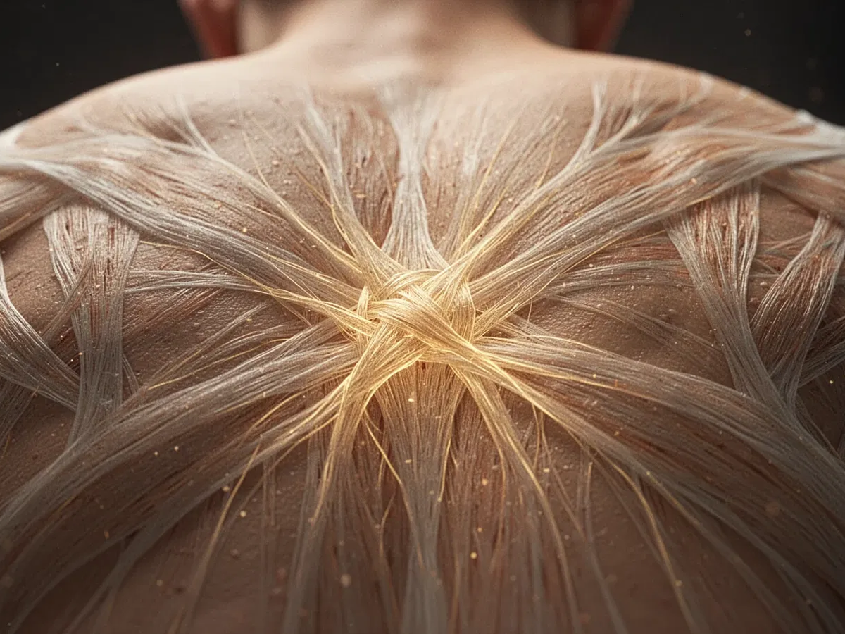Das Fasziengewebe umhüllt Muskeln und Organe wie ein feinfühliges Kommunikationsnetz. Es ist voller Rezeptoren, die ständig Informationen an das Gehirn senden. Bei chronischem Stress verhärtet sich dieses Gewebe, verliert an Elastizität und kann verkleben.