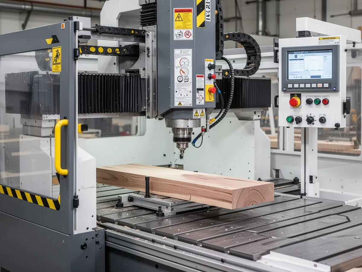 CNC-Maschinen vereinen traditionelle Gefahren der Holzbearbeitung mit neuen Risiken durch Automatisierung und Hochgeschwindigkeitsbetrieb. Die Richtlinie adressiert vier Hauptgefahrenbereiche: