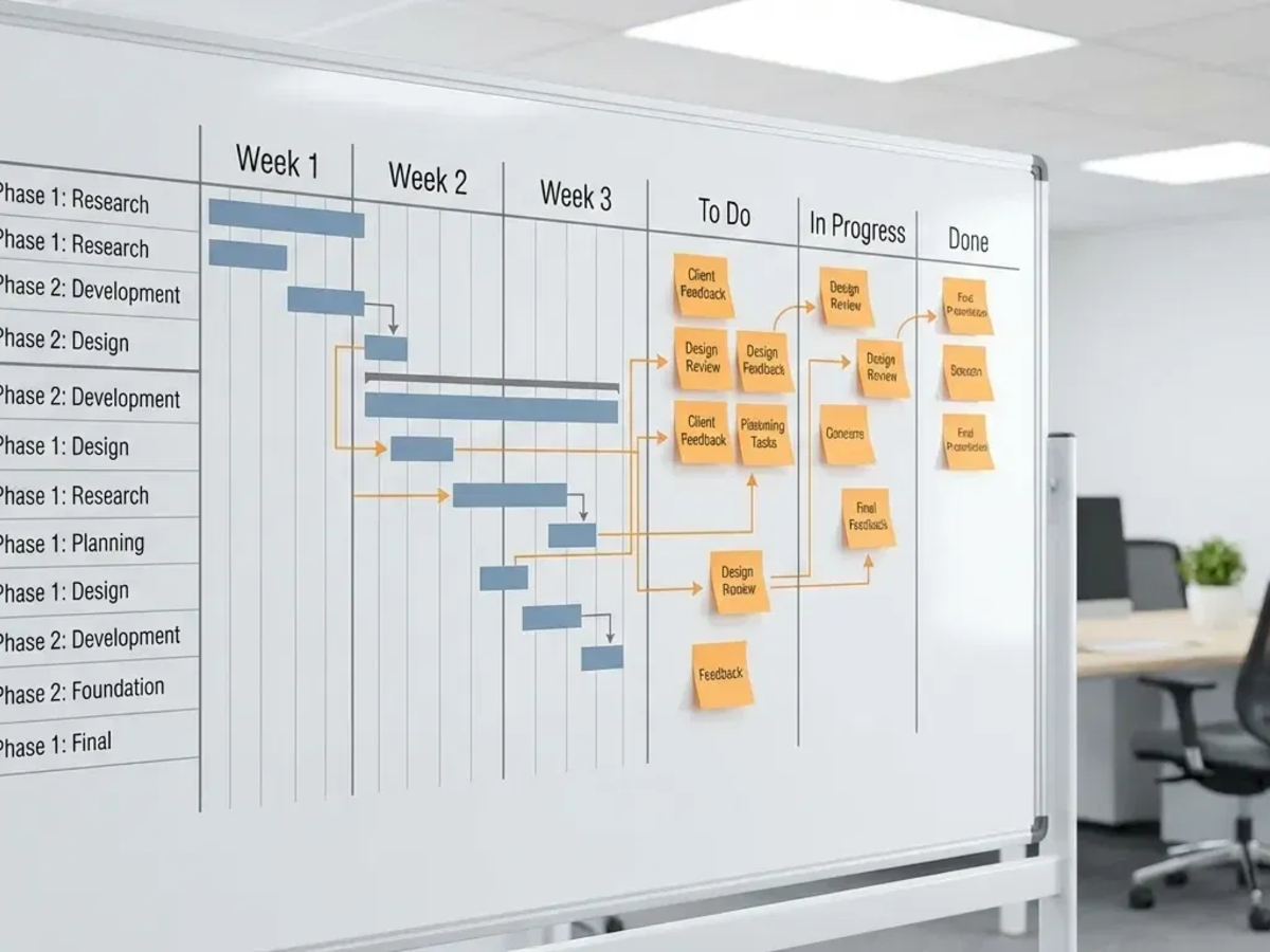 Moderne Software-Tools wie Jira, Confluence oder Asana sind dabei unverzichtbar. Sie integrieren Gantt-Diagramme für die Grobplanung und Kanban-Boards für die agile Umsetzung in einer Plattform. So bleiben alle Beteiligten auf demselben Stand.