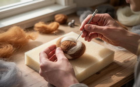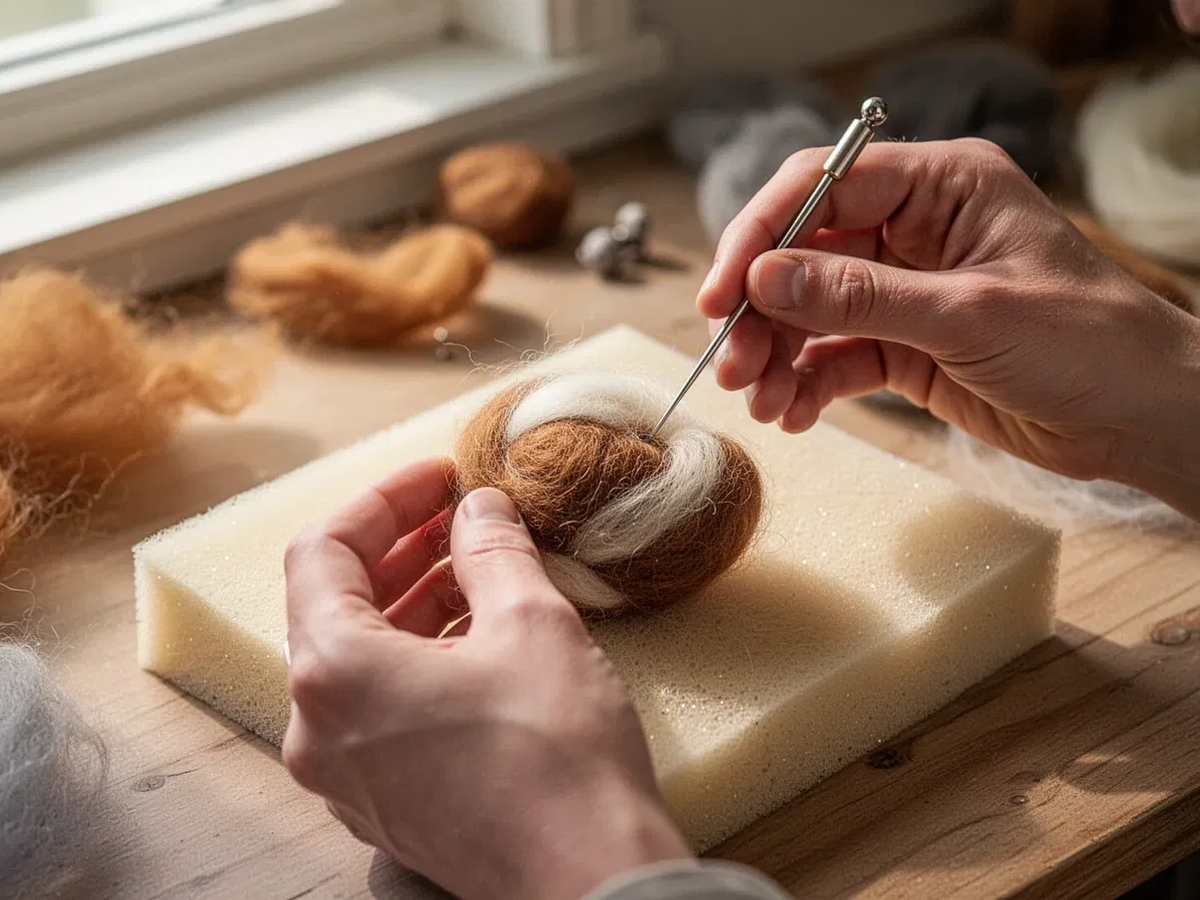Beim Nadelfilzen verdichten sich lose Fasern durch tausende Nadelstiche zu einer festen Form. Dieser Prozess erfordert präzise Hand-Auge-Koordination und anhaltende Aufmerksamkeit. Genau hier setzt die Wirkung an: Die fokussierte, rhythmische Tätigkeit kann die Neuroplastizität – die Anpassungsfähigkeit des Gehirns – fördern.