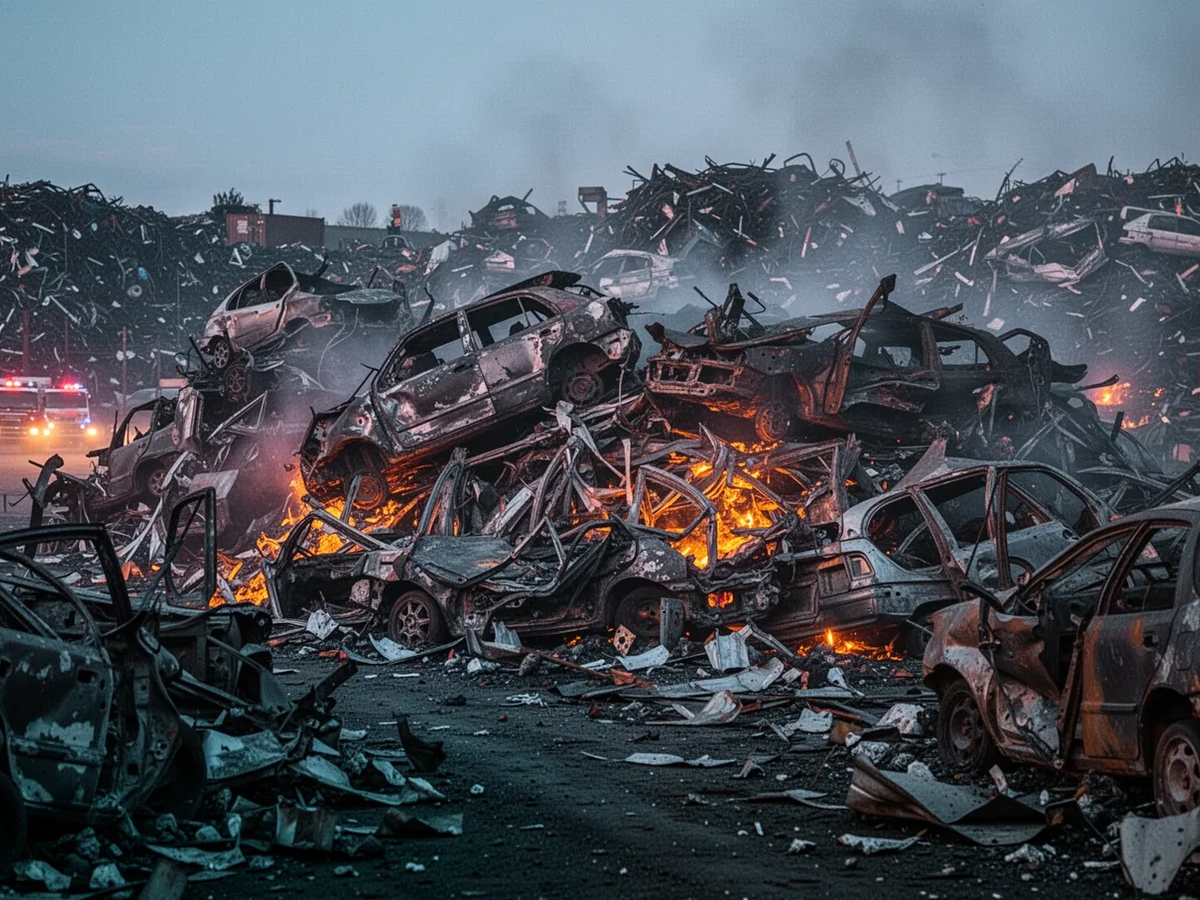 In den letzten Monaten haben eine Reihe spektakulärer Brände die Anfälligkeit moderner Recyclingbetriebe schonungslos offengelegt. Einer der schwersten Vorfälle ereignete sich im Mai 2025 bei Oldenburg. In einem Schrottplatz entwickelte sich ein Großbrand, der den Einsatz von über 230 Feuerwehrleuten erforderte. Das Feuer griff auf Hunderte ausgemusterter Fahrzeuge und riesige Reifenstapel über. Explodierende Gasflaschen und Metalllegierungen entfachten zusätzliche Brände in Werkstattgebäuden. Die Löscharbeiten zogen sich über Tage hin.
