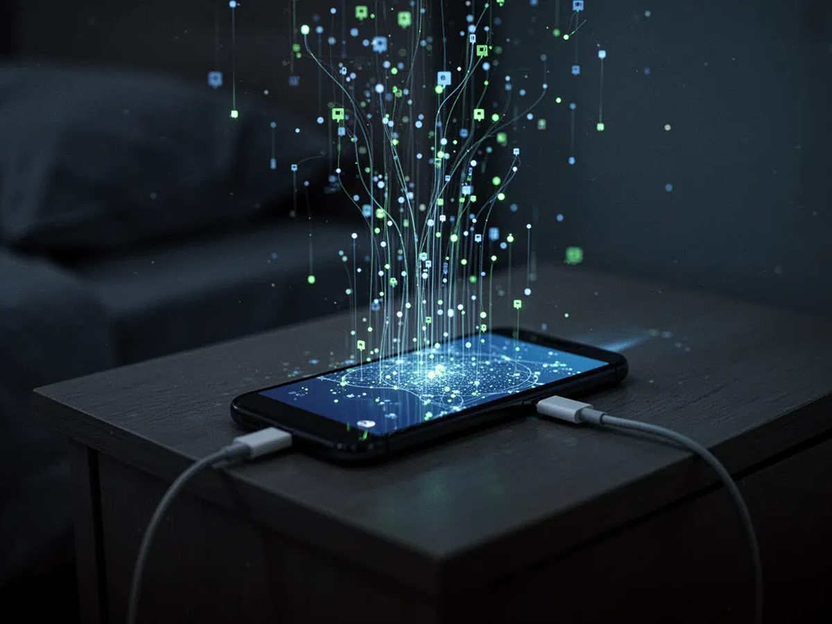 Selbst ungenutzt auf dem Nachttisch ist ein Smartphone hochaktiv. In regelmäßigen Abständen sendet es Datenpakete an die Server von Google (Android) und Apple (iOS) sowie an zahlreiche App-Anbieter. Ein Teil dieses Verkehrs ist für grundlegende Funktionen wie Push-Nachrichten oder System-Updates nötig.