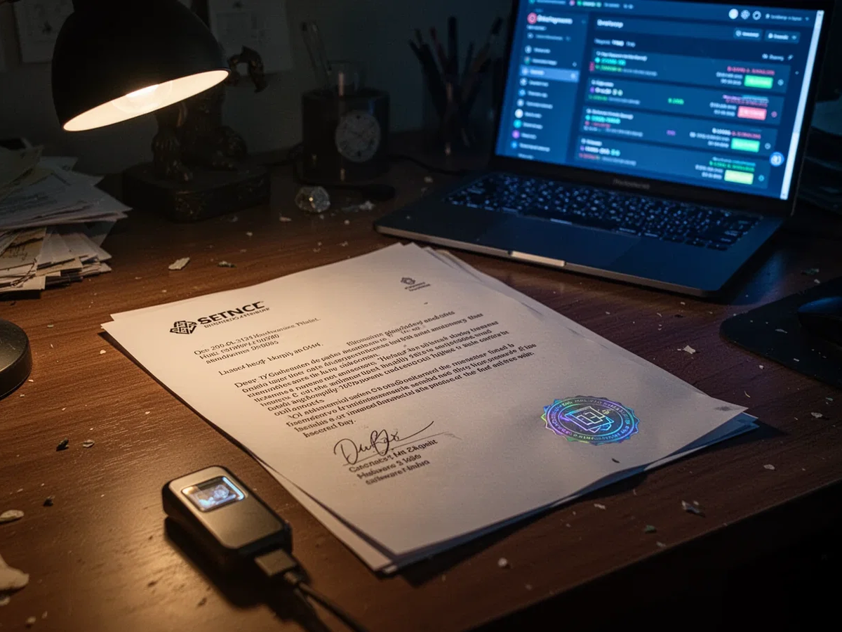 Der Fall begann im Spätjahr 2025. Ein Bewohner aus Connecticut verlor rund 234.000 Euro, nachdem er auf einen täuschend echten Brief hereinfiel. Dieser gab vor, vom Hersteller seines Hardware-Wallets, „Ledger Security & Compliance“, zu stammen. Das Schreiben forderte eine angebliche obligatorische Sicherheitsüberprüfung. Durch das Scannen eines beigefügten QR-Codes landete das Opfer auf einer gefälschten Website und gab seinen 24-Wörter-Wiederherstellungsschlüssel preis. Sekunden später waren die Gelder weg.