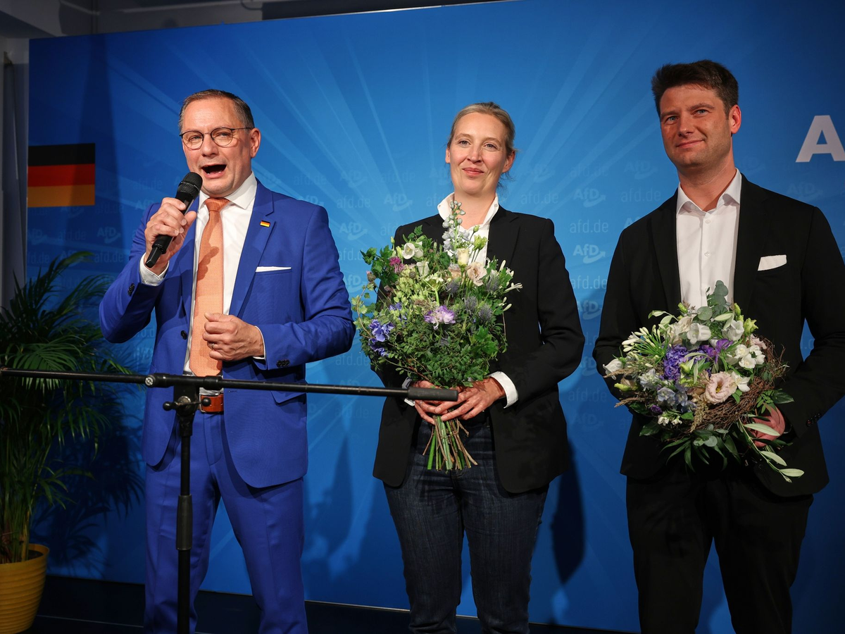 Die AfD ist bei der Europawahl im Osten nach einer ARD-Hochrechnung mit Abstand stärkste Kraft geworden. Wie der Sender am Sonntagabend berichtete, kamen die Rechtspopulisten in den östlichen Bundesländern inklusive Berlin auf 27,1 Prozent. Dahinter lagen die CDU mit 20,7 Prozent und das Bündnis Sahra Wagenknecht (BSW) mit 13,1 Prozent der Stimmen.
