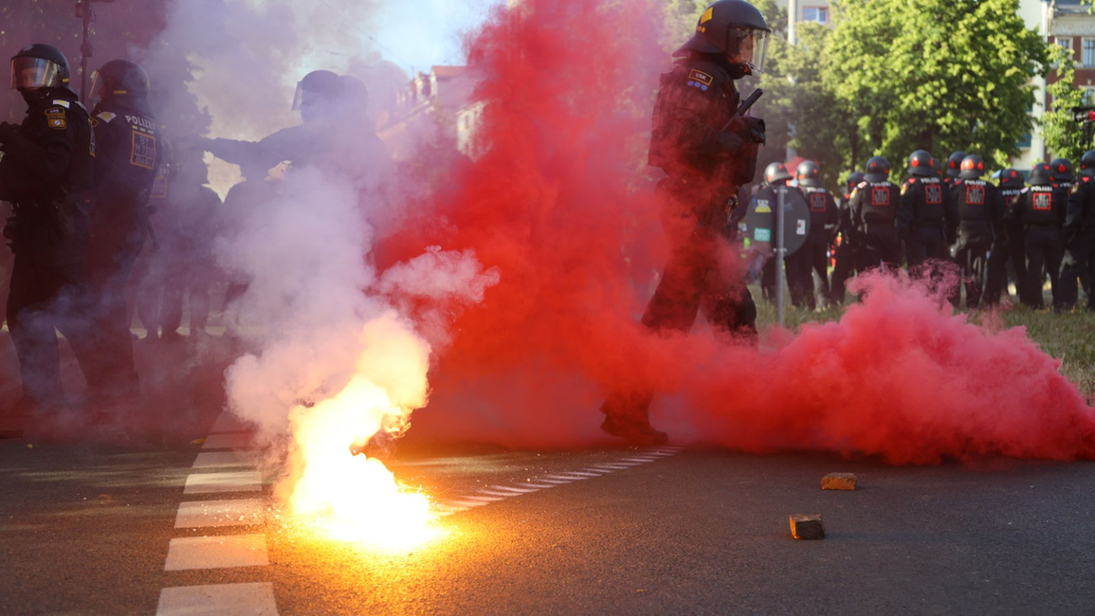 03.06.2023 - 20:16:06 | dpa.deIn Leipzig hat es am Samstag nach dem Urteil gegen Lina E. wegen linksextremistischer Gewalttaten erneut Auseinandersetzungen zwischen Polizei und Demonstranten gegeben. Bei einer Demonstration am Alexis-Schumann-Platz gab es Böllerschüsse, Steine, Flaschen und ein Brandsatz wurden auf Polizisten geworfen.