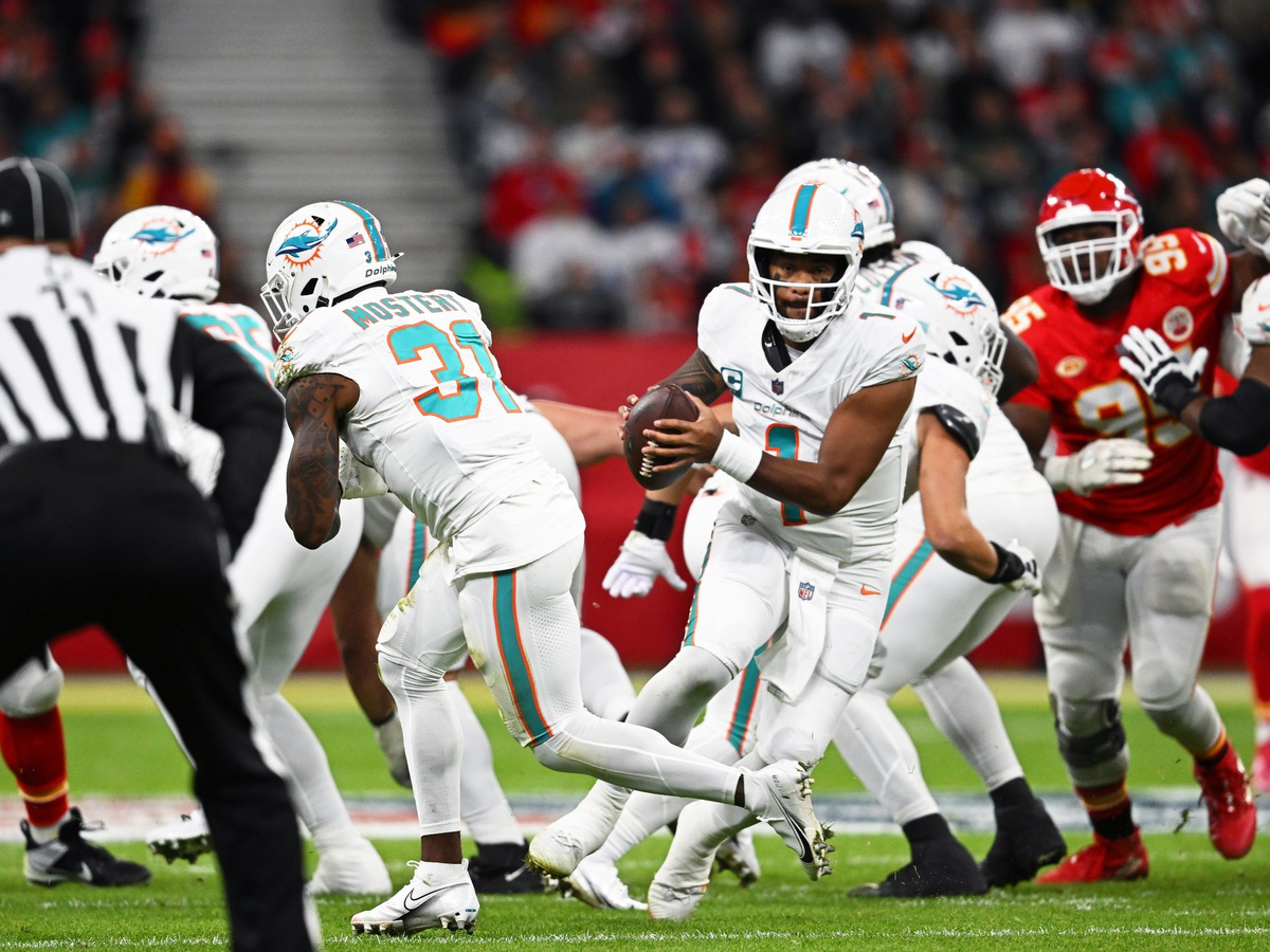 05.11.2023 - 19:24:23 | dpa.dePatrick Mahomes drehte im Frankfurter Football-Tollhaus noch eine kleine Ehrenrunde, aus den Boxen dröhnte in voller Lautstärke «Don't Stop Believin'» von Journey. Angeführt von ihrem Superstar haben die Kansas City Chiefs ihre Vormachtstellung in der NFL untermauert und Rivale Miami Dolphins besiegt.