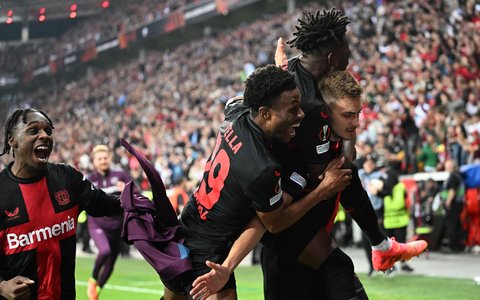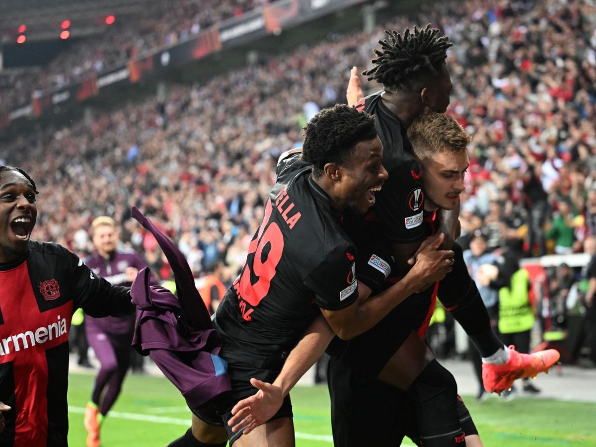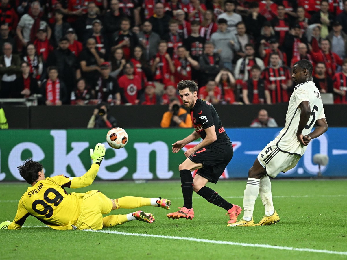 Denn auch im 49. Pflichtspiel der Saison blieb Bayer ungeschlagen - weil Josip Stanisic weit in der Nachspielzeit (90.+7) zum 2:2 gegen die AS Rom traf und sich die Sorgen nach dem zwischenzeitlichen 0:2-Rückstand endgültig in Luft auflösten. Bayer war zwar drückend überlegen, doch Leandro Paredes glich das 2:0 aus dem Hinspiel in Rom durch einen Foulelfmeter (43.) und einen Handelfmeter (66.) aus. Ein Eigentor von Gianluca Mancini (83.) brachte Bayer dann doch noch in die Spur und sorgte für eine erfolgreiche Revanche nach dem Halbfinal-Aus im Vorjahr gegen die Roma.