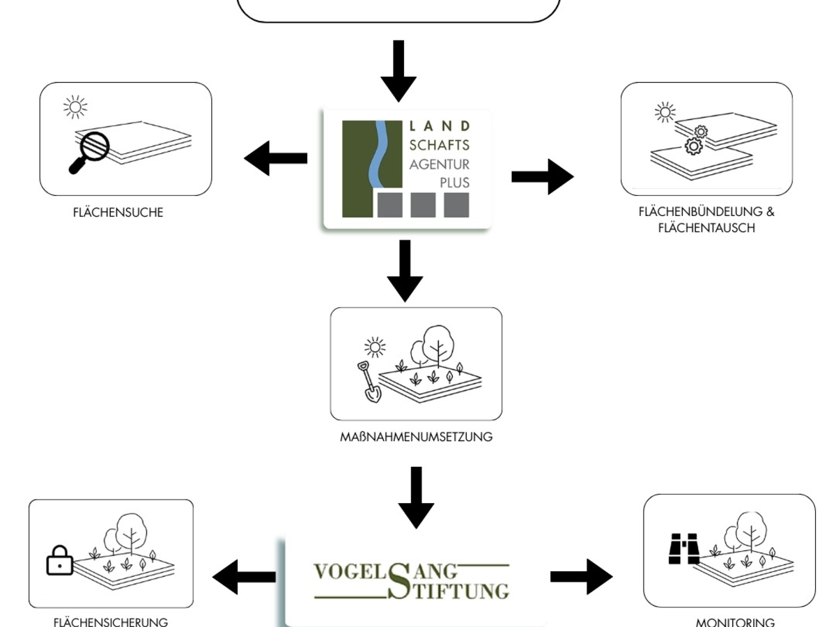 Aus Sicht der Landschaftsagentur Plus liegt genau darin ein entscheidender Hebel für mehr Umsetzbarkeit. Flächenagenturen übernehmen bereits heute Aufgaben, die dem angekündigten Modell "professioneller Dritter" entsprechen: Sie identifizieren geeignete Flächen, entwickeln naturschutzfachlich tragfähige Maßnahmen, bündeln Bedarfe verschiedener Vorhabenträger und begleiten die langfristige Entwicklung von Ausgleichs- und Ersatzmaßnahmen. Durch ihre organisatorischen Strukturen, die häufig in Kooperation mit Stiftungen oder anderen dauerhaften Trägern arbeiten, können sie auch die langfristige Pflege, Entwicklung und Sicherung dieser Flächen gewährleisten. Denn Naturschutzmaßnahmen wirken über Jahrzehnte. Deshalb braucht es Akteure, die nicht nur Flächen vermitteln, sondern auch ihre langfristige Entwicklung institutionell sicherstellen.