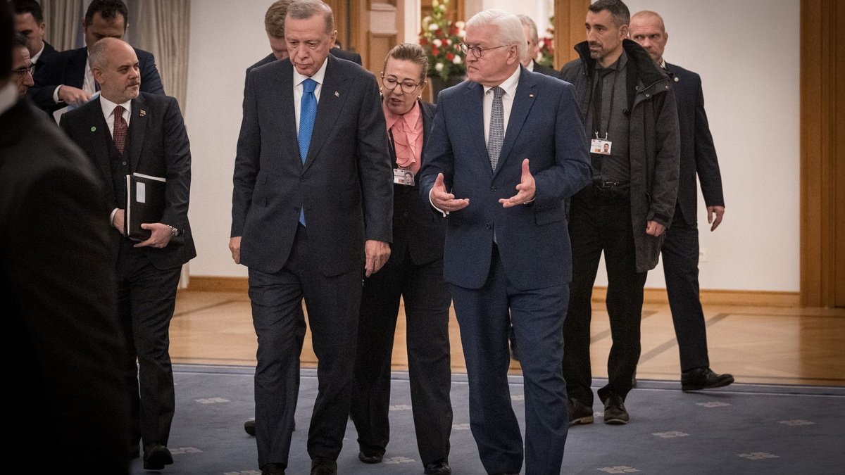 Ankaras Interesse an 40 Kampfflugzeugen sei der Regierung bekannt, sagte Regierungssprecher Steffen Hebestreit. Erdogan traf derweil im Schloss Bellevue Bundespräsident Frank-Walter Steinmeier. Ob das türkische Interesse an den Kampfflugzeugen auch bei dem für den Abend geplanten Essen mit Scholz auf den Tisch kommen sollte, war zunächst unklar.