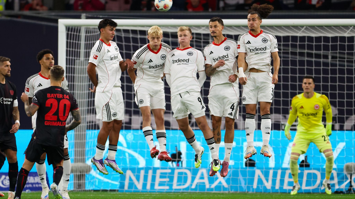 Eine gute Einzelaktion von Leverkusens Nathan Tella, ein Foul und ein Freistoß sorgten dann jedoch für die frühe Bayer-Führung. Grimaldo hob den Ball über die Mauer, traf den Pfosten und vom Körper von Eintracht-Keeper Michael Zetterer sprang das Spielgerät ins Tor.
