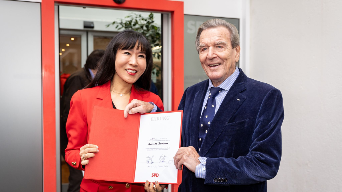 27.10.2023 - 12:39:16 | dpa.deAltkanzler Gerhard Schröder ist für 60 Jahre Parteimitgliedschaft von der SPD geehrt worden. Das teilten Schröder und Hannovers früherer Oberbürgermeister Herbert Schmalstieg, der die Ehrung vorgenommen hatte, nach der nicht-öffentlichen Veranstaltung in Hannover mit.