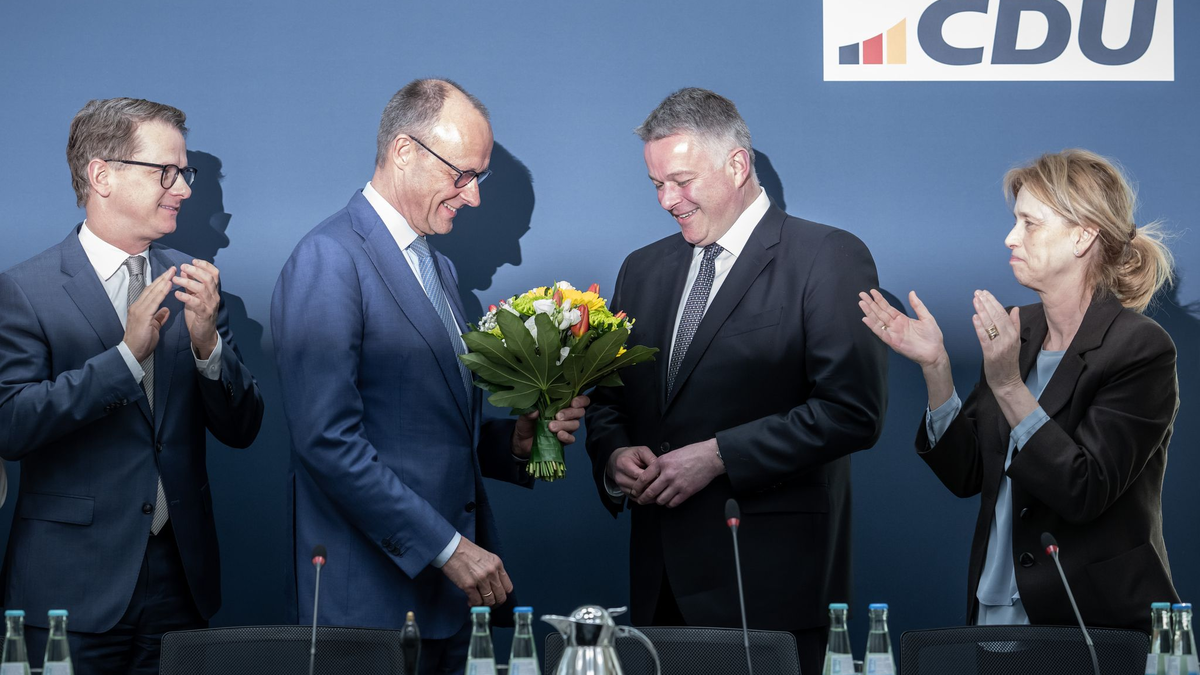 Der CDU-Chef und die ganze Parteispitze feiern am Tag nach der Wahl Sieger Gordon Schnieder im Berliner Konrad-Adenauer Haus, aber nicht zu überschwänglich. Merz weiß, dass der Wahlausgang zwar auch für ihn als Parteichef ein Sieg ist. Dem Kanzler wird er das Regieren aber auch erschweren.