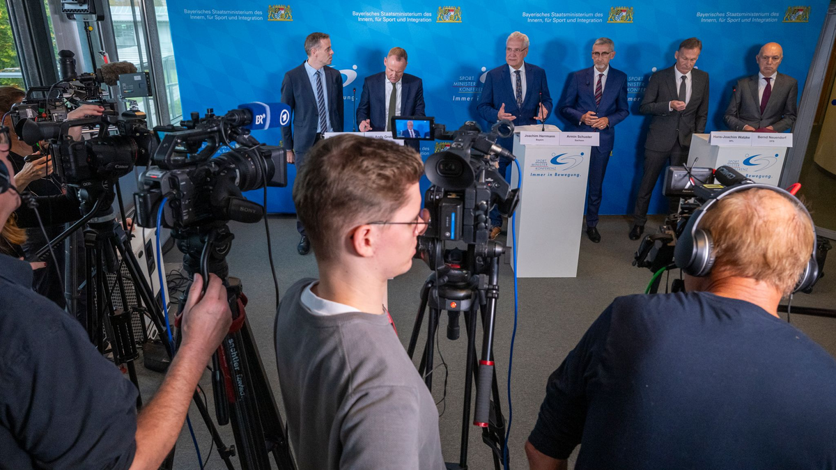 18.10.2024 - 16:20:45 | dpa.deMit finsteren Mienen hörten sich Bernd Neuendorf und Hans-Joachim Watzke die einleitenden und kritischen Worte von Bayerns Innenminister Joachim Herrmann an. Nach drei Stunden einer teils kontroversen Debatte wirkten die Spitzenvertreter von DFB und DFL dann schon weniger angespannt - und nicht unzufrieden. Bei einer Fußball-Sicherheitskonferenz in München haben sich Sport und Politik auf ein verschärftes Vorgehen gegen einzelne Gewalttäter geeinigt. Vor kollektiven Maßnahmen bleiben Fans - entgegen großer Befürchtungen im Vorfeld - dagegen vorerst verschont.