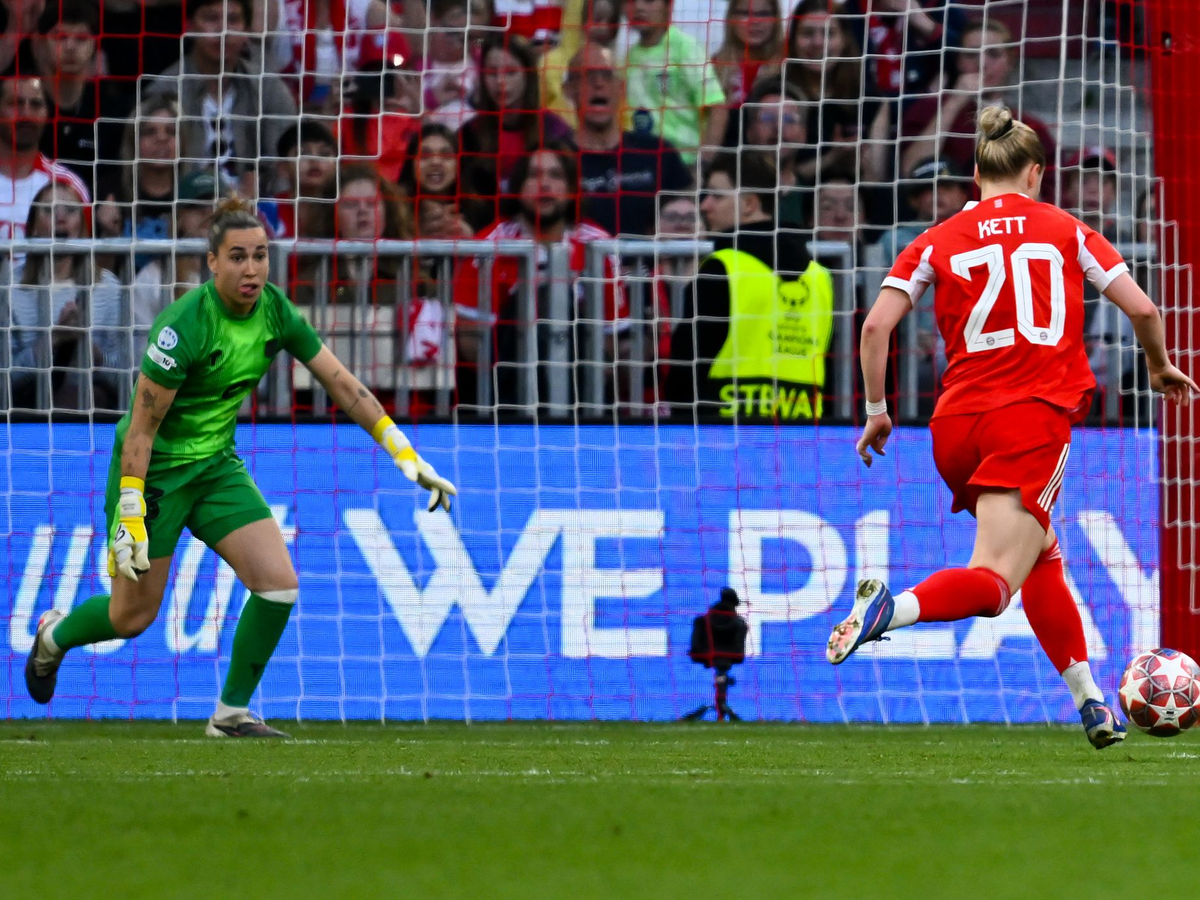 Kett sorgte gegen Ende der ersten Halbzeit für zwei Münchner Abschlüsse, die Barça-Torhüterin Cata Coll entschärfte. Nach Pernille Harders starker Vorarbeit war es dann auch Kett, die zum 1:1 vollendete - und später zur tragischen Figur wurde.