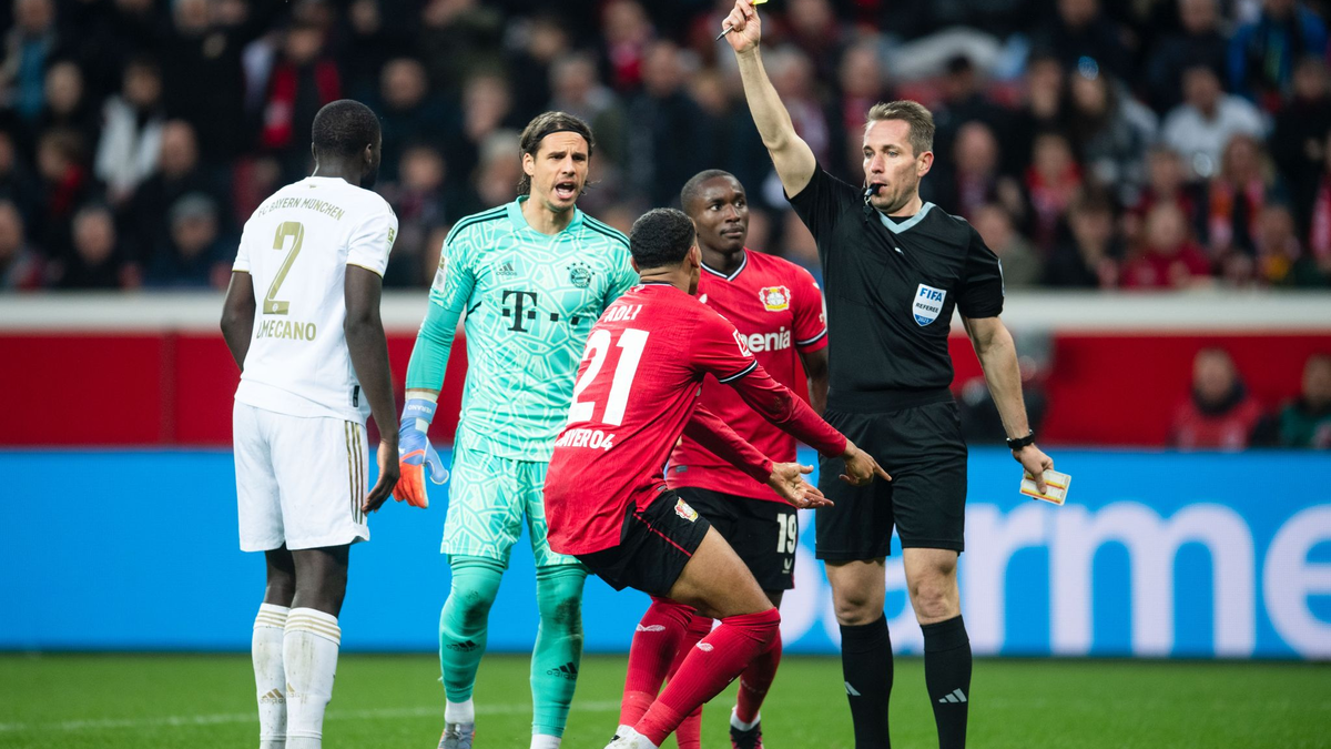 Innenverteidiger Jonathan Tah rückte teils weit aus der Viererkette heraus und störte Musiala manchmal schon kurz vor dem Bayern-Strafraum bei der Ballannahme. Das durchaus mitunter harte Einsteigen Tahs gegen seinen Nationalmannschaftskollegen blieb zunächst aber ohne Konsequenzen in Form einer Karte.