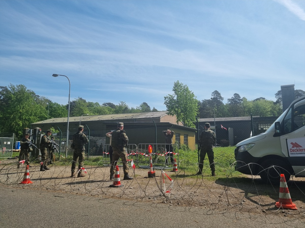 Für die Soldatinnen und Soldaten des Heimatschutzregiments 2 eine Premiere - bisher fanden Übungen für sie immer auf einem Übungsplatz statt. Oberst Jens Teichmann, Kommandeur des Heimatschutzregiments 2: "Diese Sichtbarkeit in der Öffentlichkeit war eines der Ziele." Neben dem Kernauftrag der Heimatschutzkräfte - dem Schutz verteidigungswichtiger Infrastruktur - stand während der Übung die Zusammenarbeit mit den zivilen Behörden im Mittelpunkt.