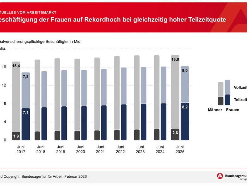 Beschäftigung der Frauen auf Rekordhoch bei gleichzeitig hoher Teilzeitquote / BA-Presseinfo Nr.10 / 2026