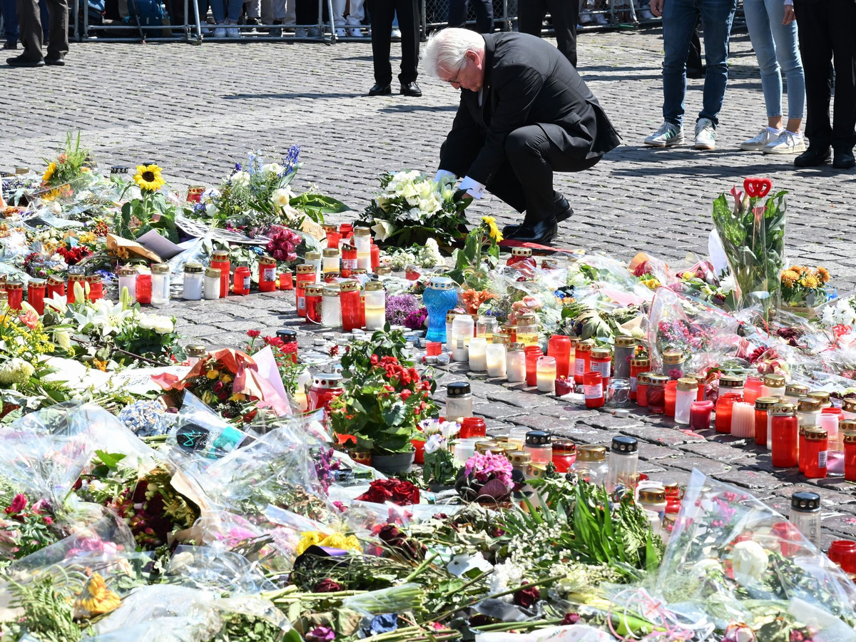 Steinmeier legte am Tatort ein Blumengebinde nieder. Auf dem Platz in der 300.000-Einwohner-Stadt im Norden Baden-Württembergs kamen Hunderte Menschen zusammen, um des Mannes zu gedenken. Eine Polizeisprecherin sprach von 1500 bis 2000 Teilnehmerinnen und Teilnehmern. Nach der Gedenkminute brandete auf dem Marktplatz zudem Applaus auf. Landesweit verharrten zum gleichen Zeitpunkt Polizisten in stiller Trauer.