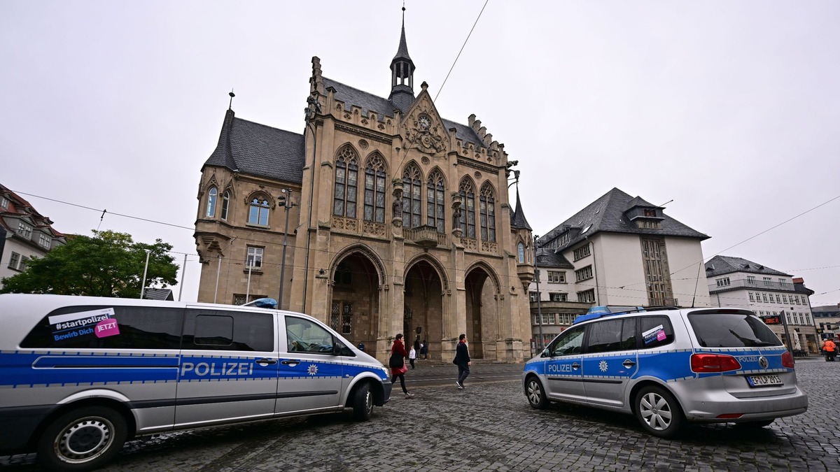 27.10.2023 - 09:02:18 | dpa.deas Erfurter Rathaus ist wegen einer Bombendrohung zwischenzeitlich abgesperrt worden. Am Morgen war ein Spürhund im Einsatz, um das Gebäude abzusuchen, wie eine Sprecherin der Erfurter Polizei sagte.
