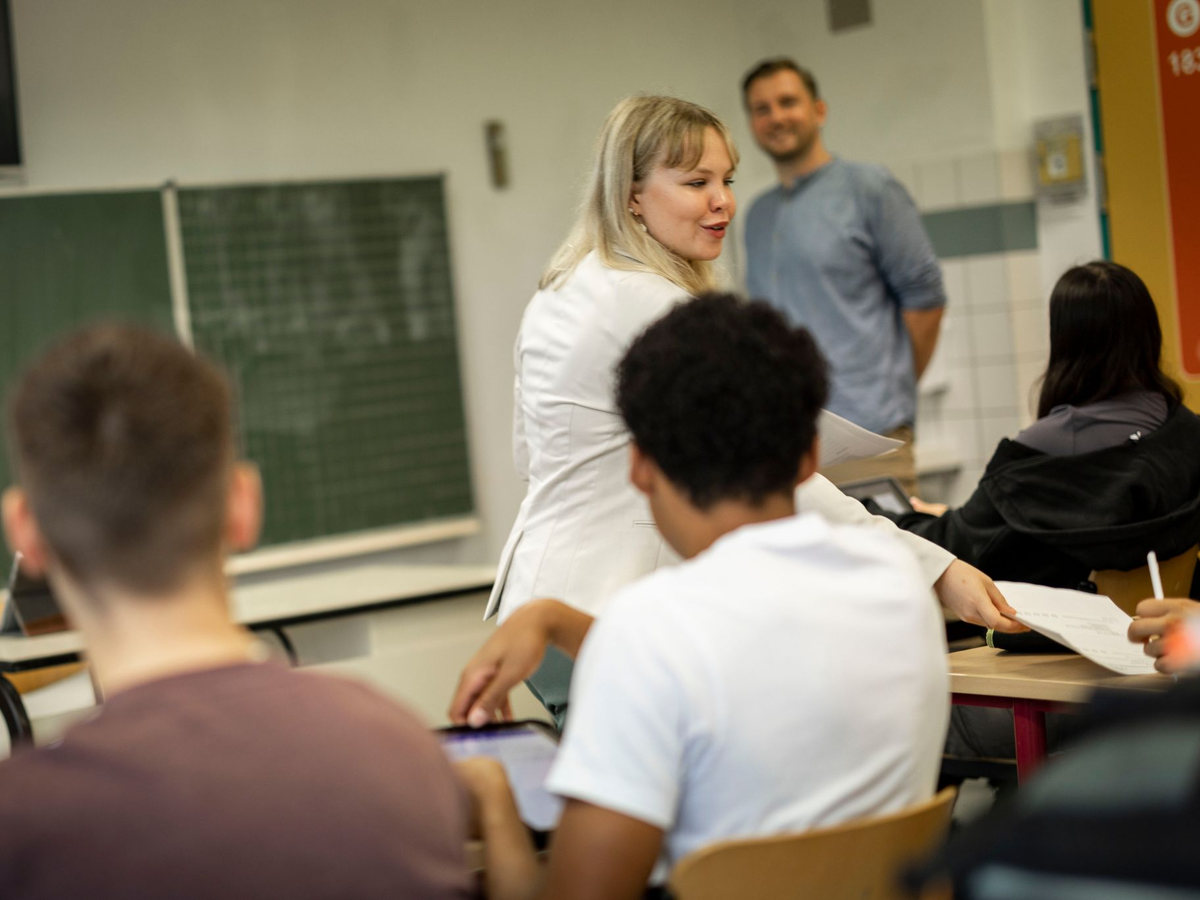 Die neue Lehrerin geht durch die Reihen der 11. Klasse, verteilt Arbeitsblätter, für den Deutsch-Grundkurs steht bald eine Klausur an. Ungewöhnlich: Die «Lehrkraft» Gina Marie Wiethege ist erst 17 Jahre alt und drückt selbst noch die Schulbank. Sie wechselt die Rolle, für einen Tag. Im Rahmen eines Programms, das junge Menschen für den Lehrerberuf gewinnen will, für den deutschlandweit händeringend Nachwuchs gesucht wird.