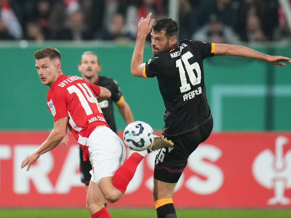 Unterdessen ist die Reise für den letzten verbliebenen Regionalligisten Kickers Offenbach beendet. Die viertklassigen Hessen verpassten gegen den Zweitligisten Karlsruher SC die nächste Überraschung und verloren mit 0:2 (0:0). In der ersten Runde hatte Offenbach Karlsruhes Ligarivalen 1. FC Magdeburg aus dem Wettbewerb geworfen.