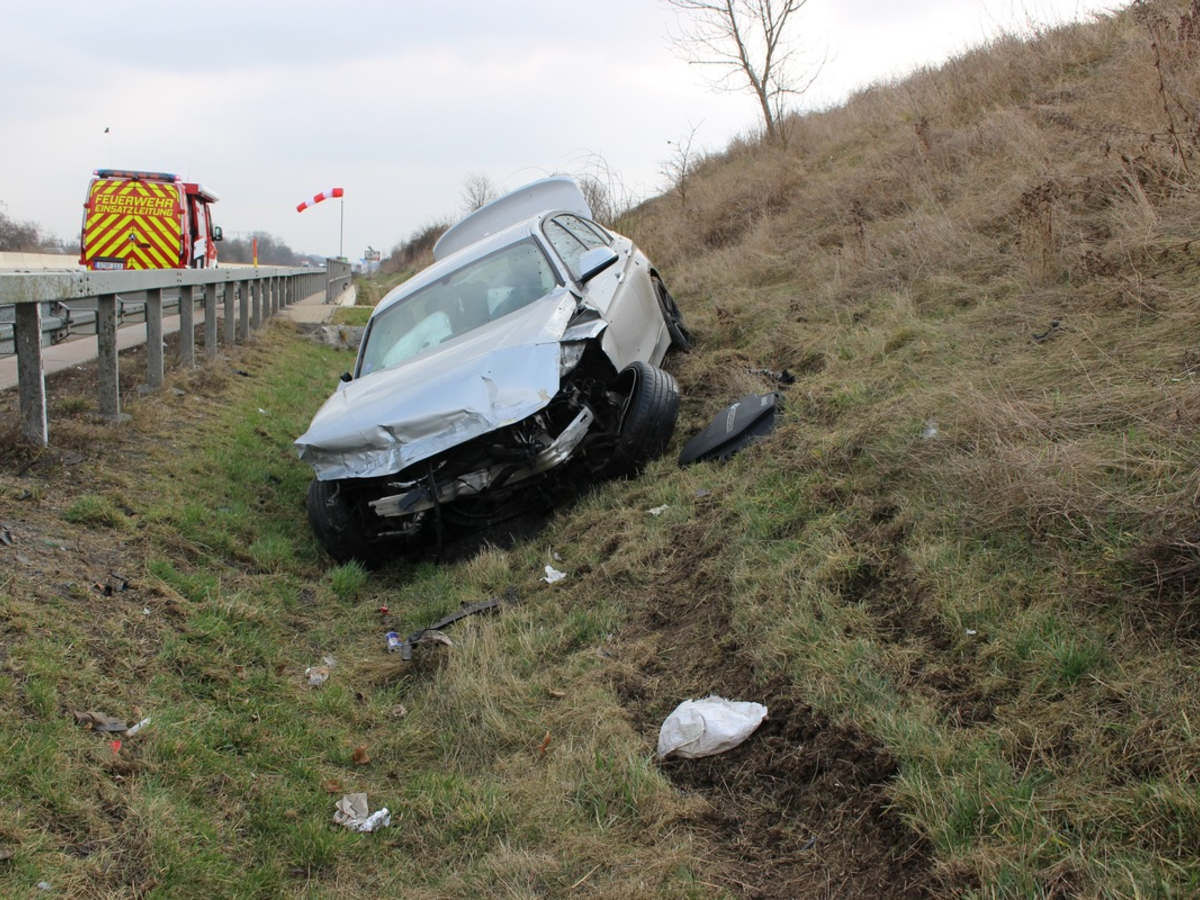 11.03.2025 - 12:15:14 | presseportal.deDer 35-jährige Fahrer eines BMWs befuhr zunächst den linken Fahrstreifen. Aus bisher ungeklärter Ursache überquerte er plötzlich den mittleren und rechten Fahrstreifen und kam in der weiteren Folge nach rechts von der Fahrbahn ab. Dort durchbrach er die angrenzende Schutzplanke. Das Fahrzeug kam im Straßengraben zum Stehen. Der junge Fahrer wurde dabei leicht verletzt.