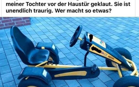 25.04.2024 - 08:19:13 | presseportal.deÜber einen Social Media Dienst erlangte ein Bundespolizist darüber Kenntnis, dass es vor kurzem im Bereich Übach-Palenberg zu einem Diebstahl eines Pedal-Gokarts kam. Eine besorgte Mutter fragte via Messanger nach, ob jemand den Diebstahl dieses Fahrzeugs beobachtet hätte.