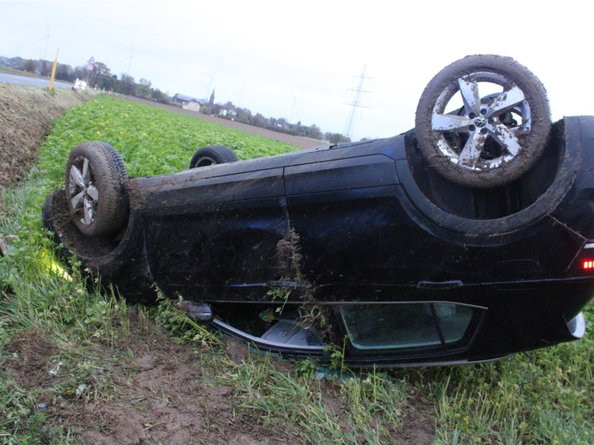 Nach ersten Ermittlungen war eine 45-jährige Frau aus Baesweiler mit ihrem Pkw auf der L109 in Richtung Dürboslar unterwegs. Auf der regennassen Fahrbahn verlor sie die Kontrolle über ihr Fahrzeug, kam nach rechts von der Straße ab und überschlug sich. Der Pkw blieb schließlich auf dem Dach in einem angrenzenden Feld liegen. Die Fahrerin wurde leicht verletzt in ein Krankenhaus gebracht. Ihr Fahrzeug musste durch ein Abschleppunternehmen geborgen werden. Der entstandene Sachschaden wird auf etwa 20.000 Euro geschätzt.