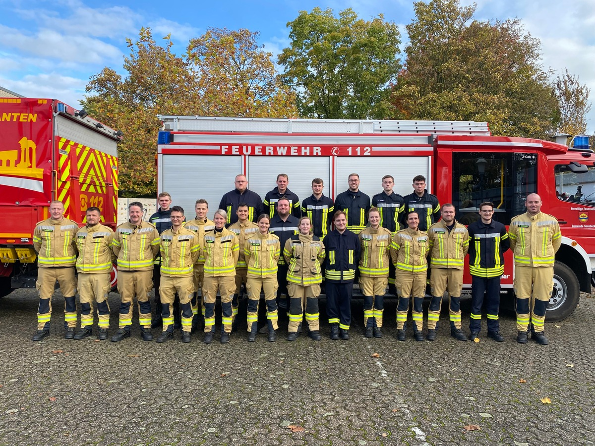 Alpen - Insgesamt 24 Frauen und Männer konnten am vergangenen Samstag erfolgreich die erste Hälfte der Truppfrau bzw. Truppmann Ausbildung absolvieren. Die Feuerwehren Xanten, Sonsbeck und Alpen arbeiten hier seit vielen Jahren eng zusammen. In ca. 80 ehrenamtlichen Ausbildungsstunden vermittelten Ausbilderinnen und Ausbilder aus den drei Feuerwehren die Inhalte der sogenannten Module 1 & 2. Hierzu zählen gesetzliche Grundlagen, Geräte- und Fahrzeugkunde sowie Grundtätigkeiten für den Einsatzdienst. Seit August fanden die Unterrichtseinheiten bei der Feuerwehr in Xanten statt. Die erlernten Inhalte können nun in den Einheiten vertieft werden. Im Februar 2024 starten die Module 3 & 4, die dann in Sonsbeck und Alpen absolviert werden. Die Feuerwehren Xanten, Sonsbeck und Alpen gratulieren den neuen Kameradinnen und Kameraden und freuen sich über den Zuwachs und das ehrenamtliche Engagement in den Kommunen.