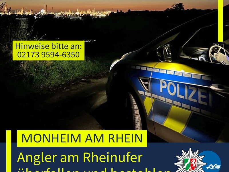 Wer hat am späten Samstagabend verdächtige Personen am Monheimer Rheinufer nahe der Kapellenstraße oder gar den Überfall beobachtet? Hinweise nimmt die Polizei in Monheim am Rhein jederzeit unter der Rufnummer 02173 9594-6350 entgegen.
