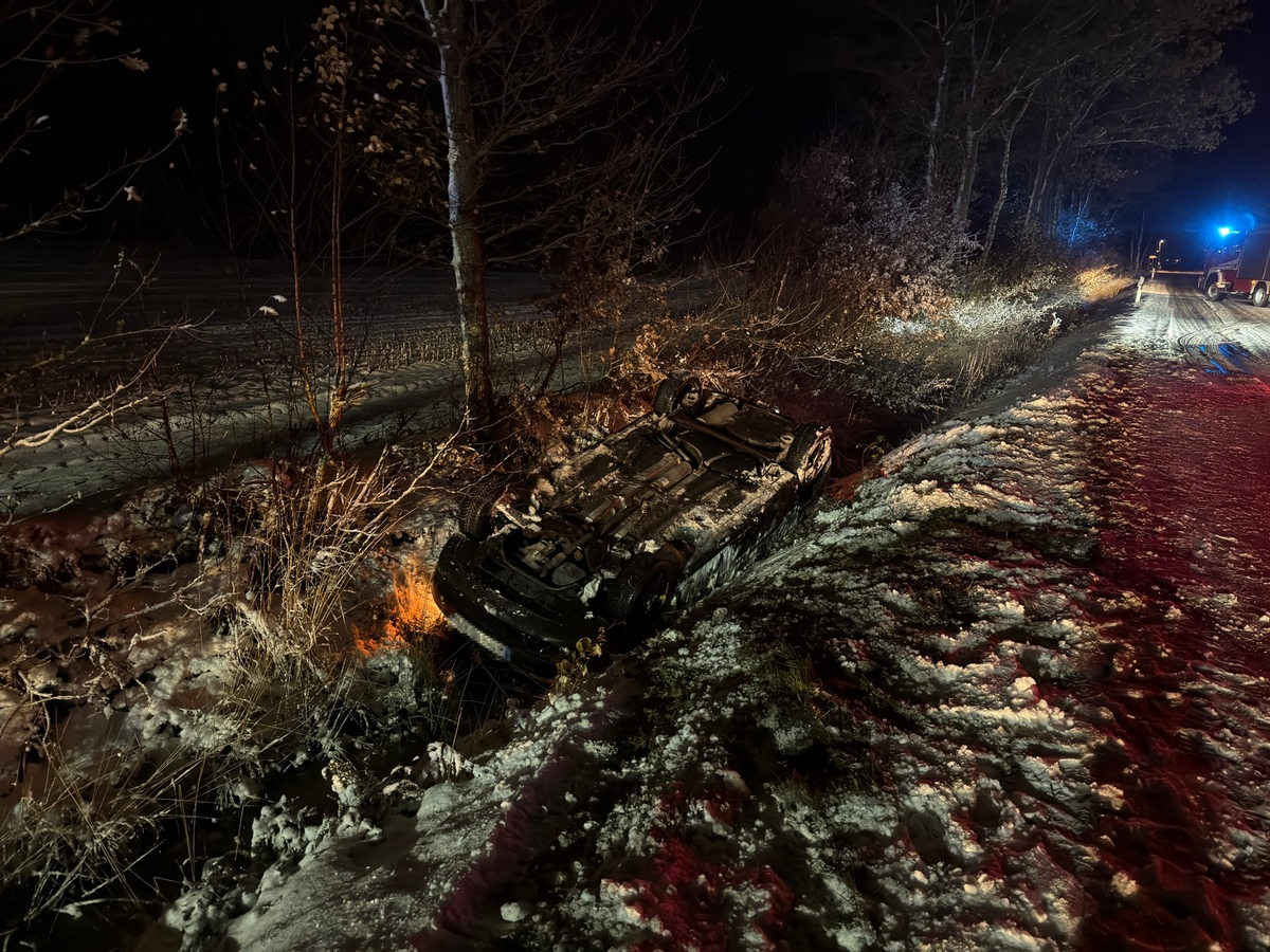FW-AUR: Auto bei Unfall in Straßengraben gelandet - Foto: presseportal.de