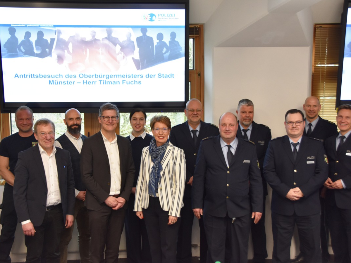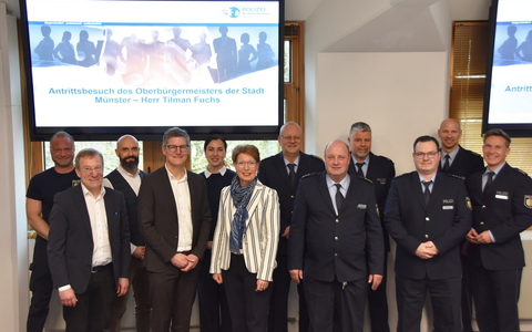 Vertreterinnen und Vertreter der Polizei gaben dem Oberbürgermeister und dem Dezernenten für Personal, Organisation, Ordnung, Feuerwehr und IT, Wolfgang Heuer, in dessen Begleitung Fuchs erschien, Einblick in die Arbeit verschiedener Bereiche der Polizei Münster. Ziel des Treffens war neben der Vorstellung der polizeilichen Arbeit und Strukturen der Austausch über aktuelle sicherheitsrelevante Themen, wie den anstehenden NRW-Tag, die zivilmilitärische Zusammenarbeit und die gemeinsame Wache am Hauptbahnhof. Zudem wurde die Kriminalitätslage in verschiedenen Deliktsbereichen in Münster erläutert.