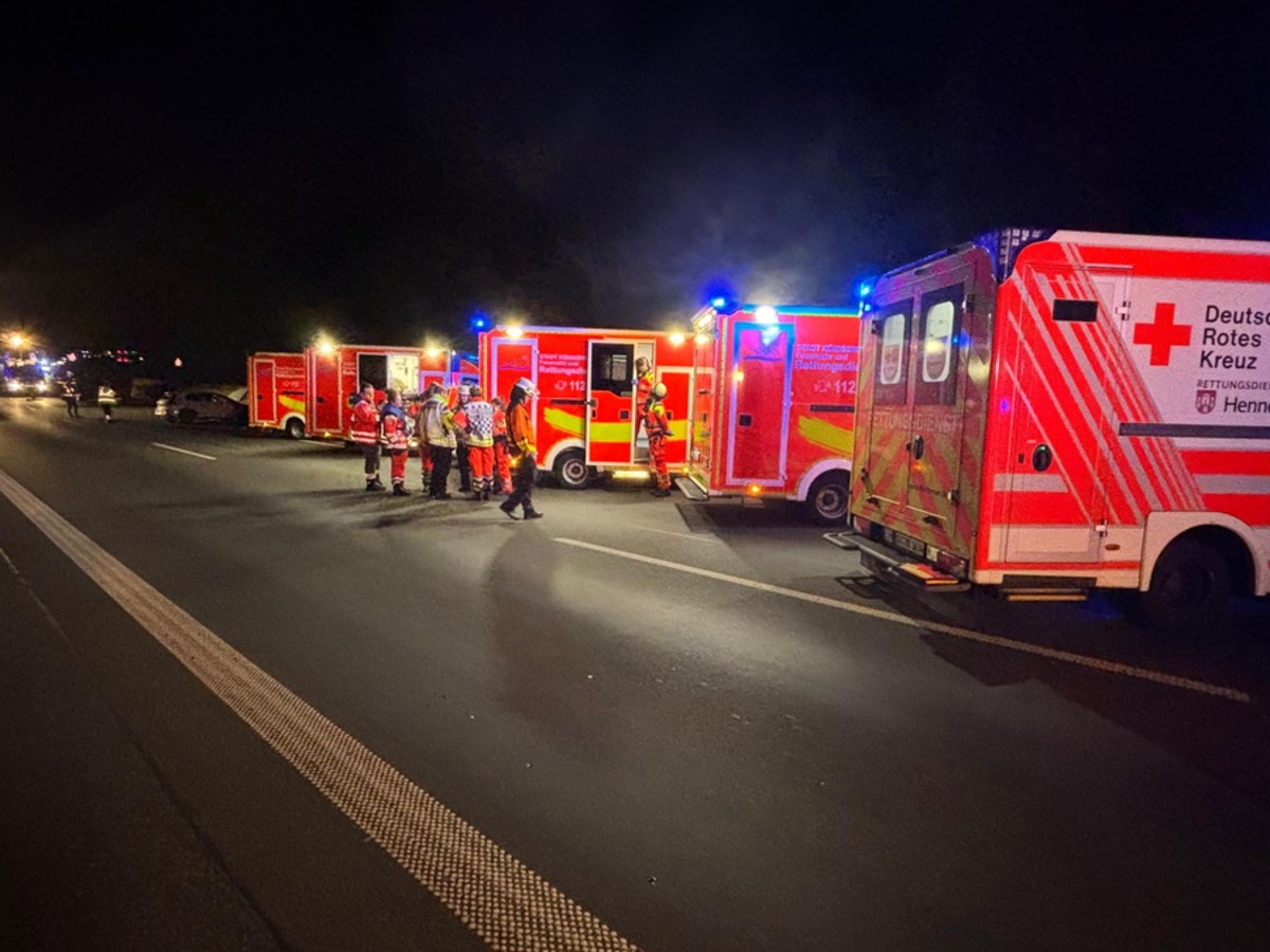 Die Feuerwehr leuchtete die Unfallstelle großräumig aus, stellte den Brandschutz sicher, nahm ausgelaufene Betriebsstoffe auf und entfernte Trümmerteile von der Fahrbahn. Die verletzten Personen wurden durch den Rettungsdienst behandelt und in Krankenhäuser transportiert.
